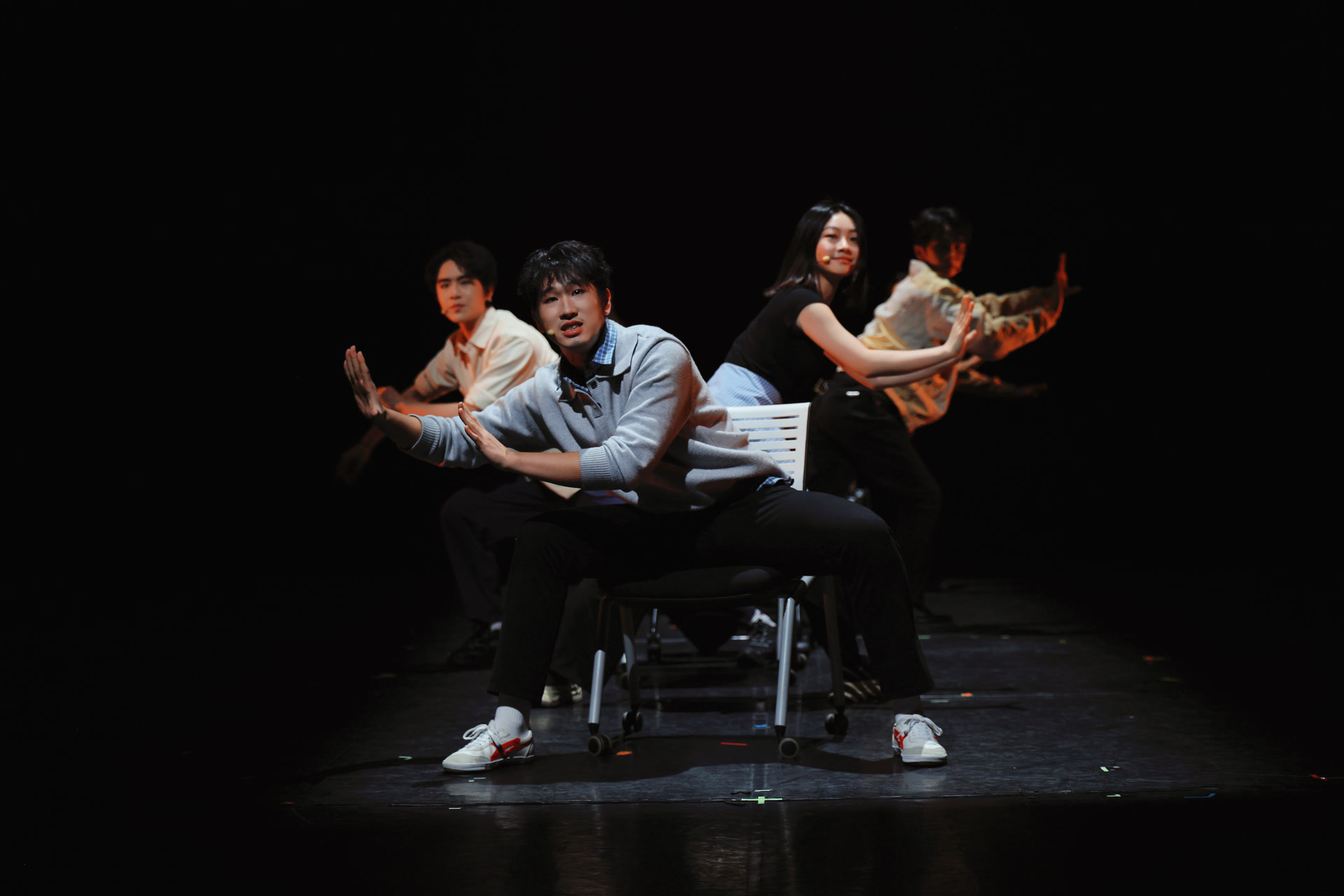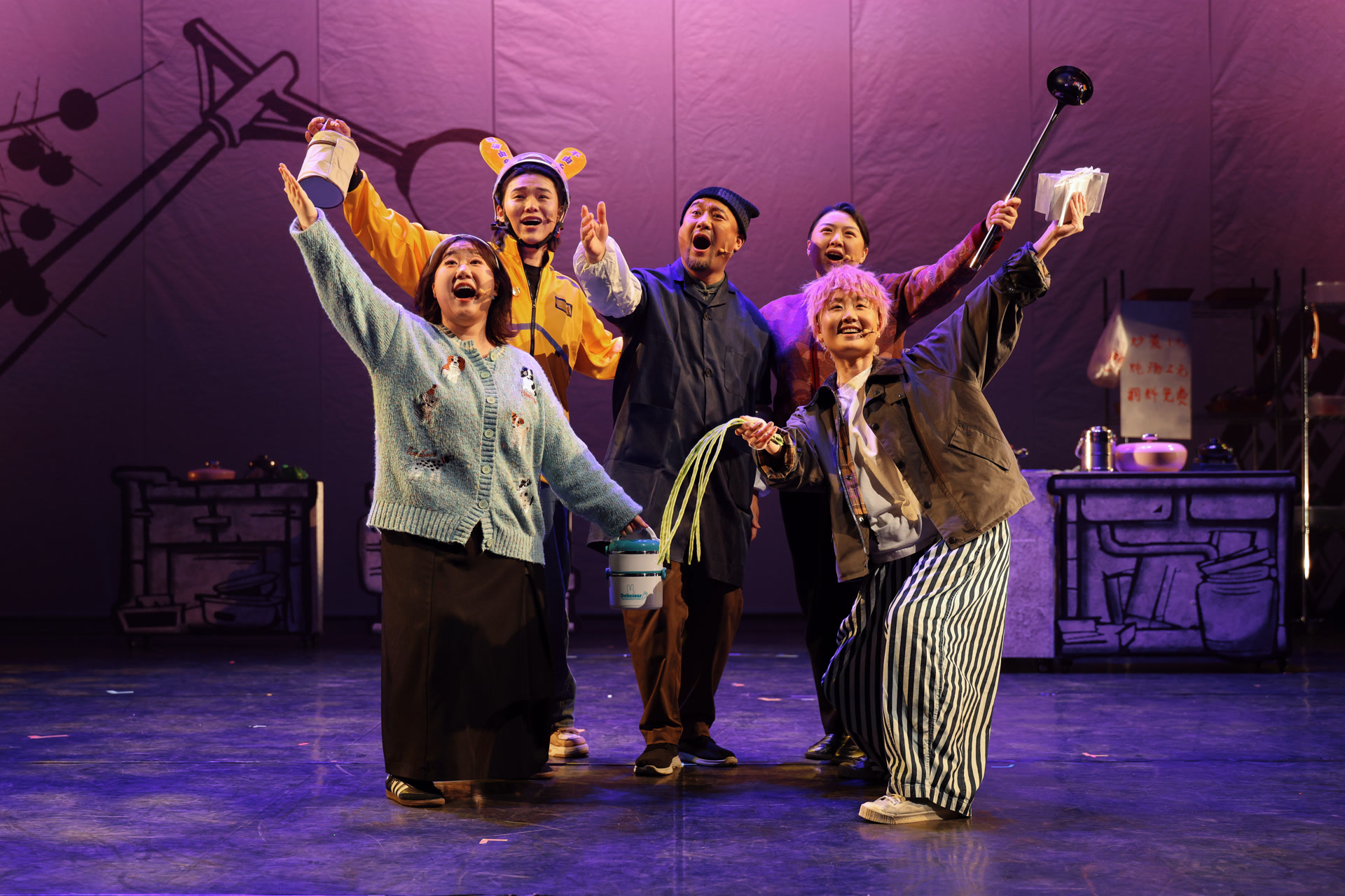 最终的汇报演出中,五个原创作品逐一亮相。《共享厨房》以温暖治愈的叙事,探讨了现代都市中的生存、记忆与守护;《娘惹艾美丽》依托“娘惹”文化,引导观众思索至亲之爱;《滴哥老赵》聚焦滴哥一族,在荒诞的碰撞中看清“逃离”的最终归宿;《一树梨花》融入戏曲元素,让观众在戏谑中感受“以智慧反抗压迫,用巧计颠覆强权”;《落坡岭》 以真实人物事件为蓝本,展现社区工作者在不可抗力面前的坚守与敬业。