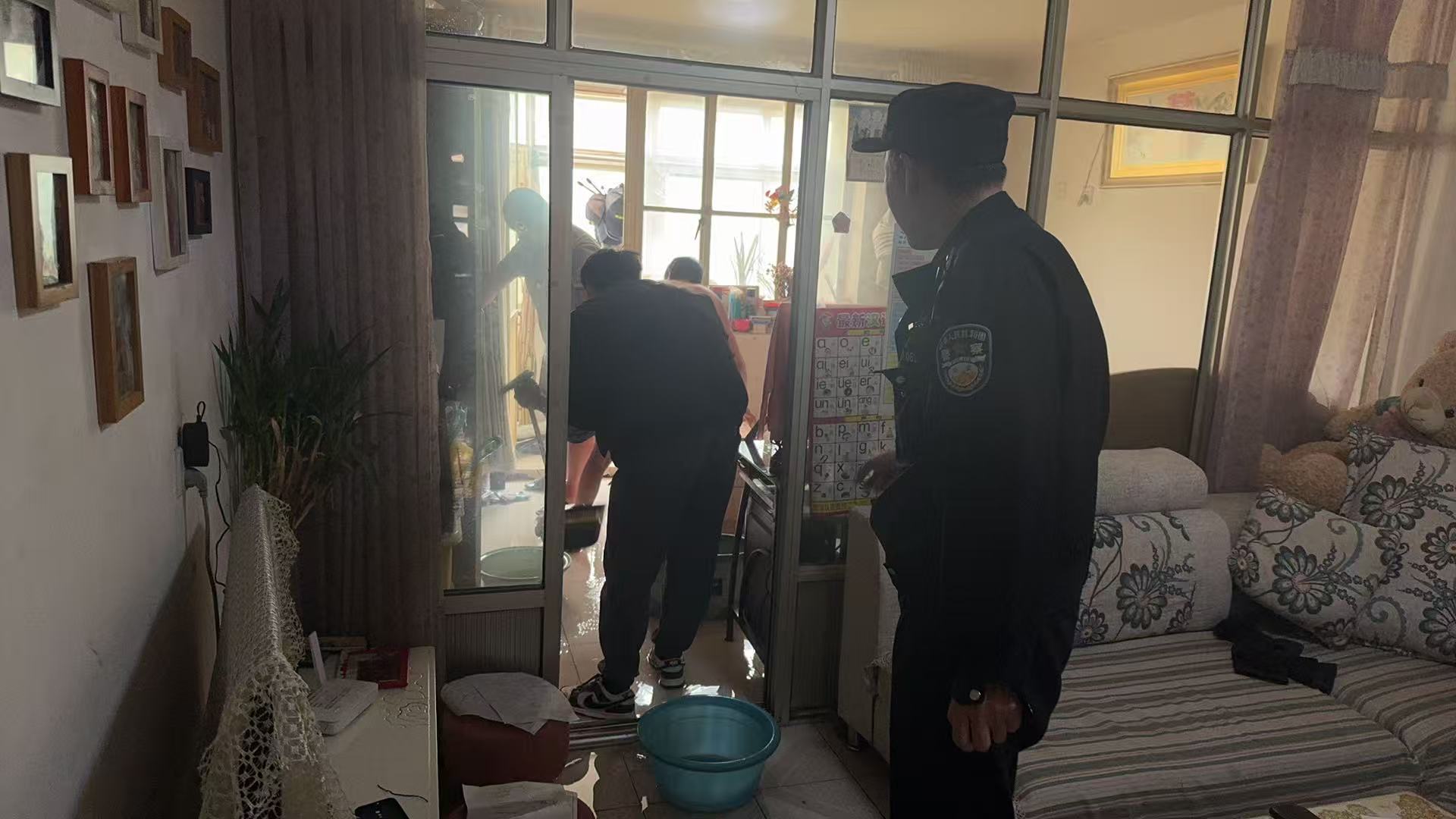 正在几人束手无策之际,供暖公司工作人员赶到了,快速关闭了楼外的阀门。随后,张浩然、民警以及闻讯而来的楼下邻居,一起帮刘先生清理家中积水。不到半小时,积水就清理得差不多了。张浩然又协助刘先生仔细检查屋内受损情况,帮忙将被浸泡的物品转移至干燥处。