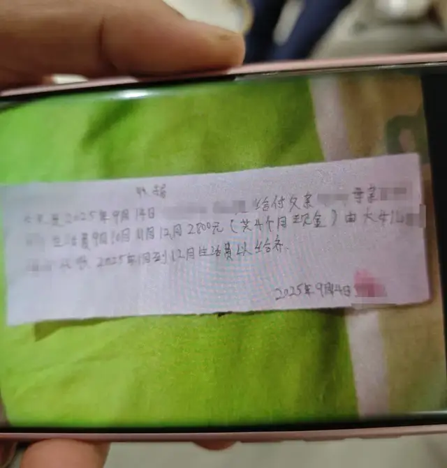 刘鑫明确表示,2025年9月3日下午16时至17时许,其在自家门口亲手将现金2800元交给李霞,在场没有见证人,没有对该过程进行录音录像和拍照,自己顺手写的内容,李霞确认后签字和按印。