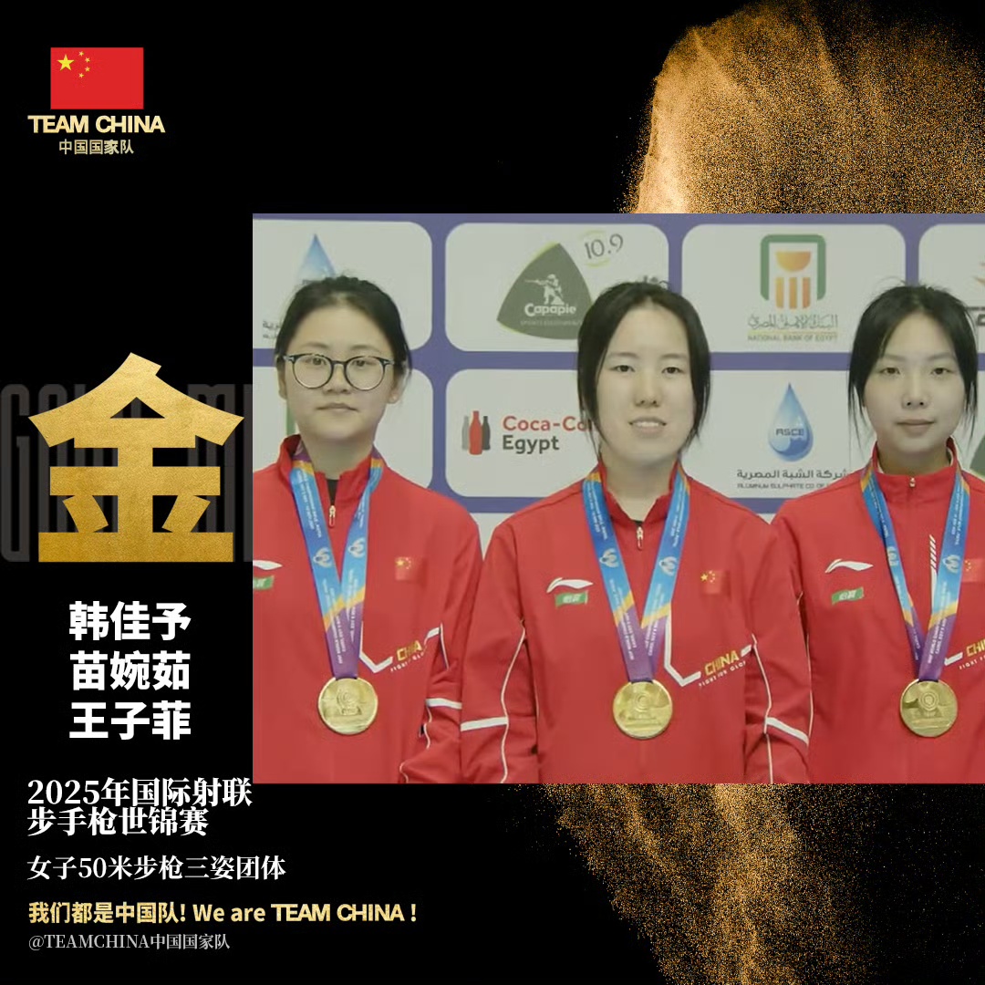 根据前一天的淘汰赛成绩,由王子菲、苗婉茹和韩佳予组成的中国队以1766环的总成绩获得该项目团体冠军。