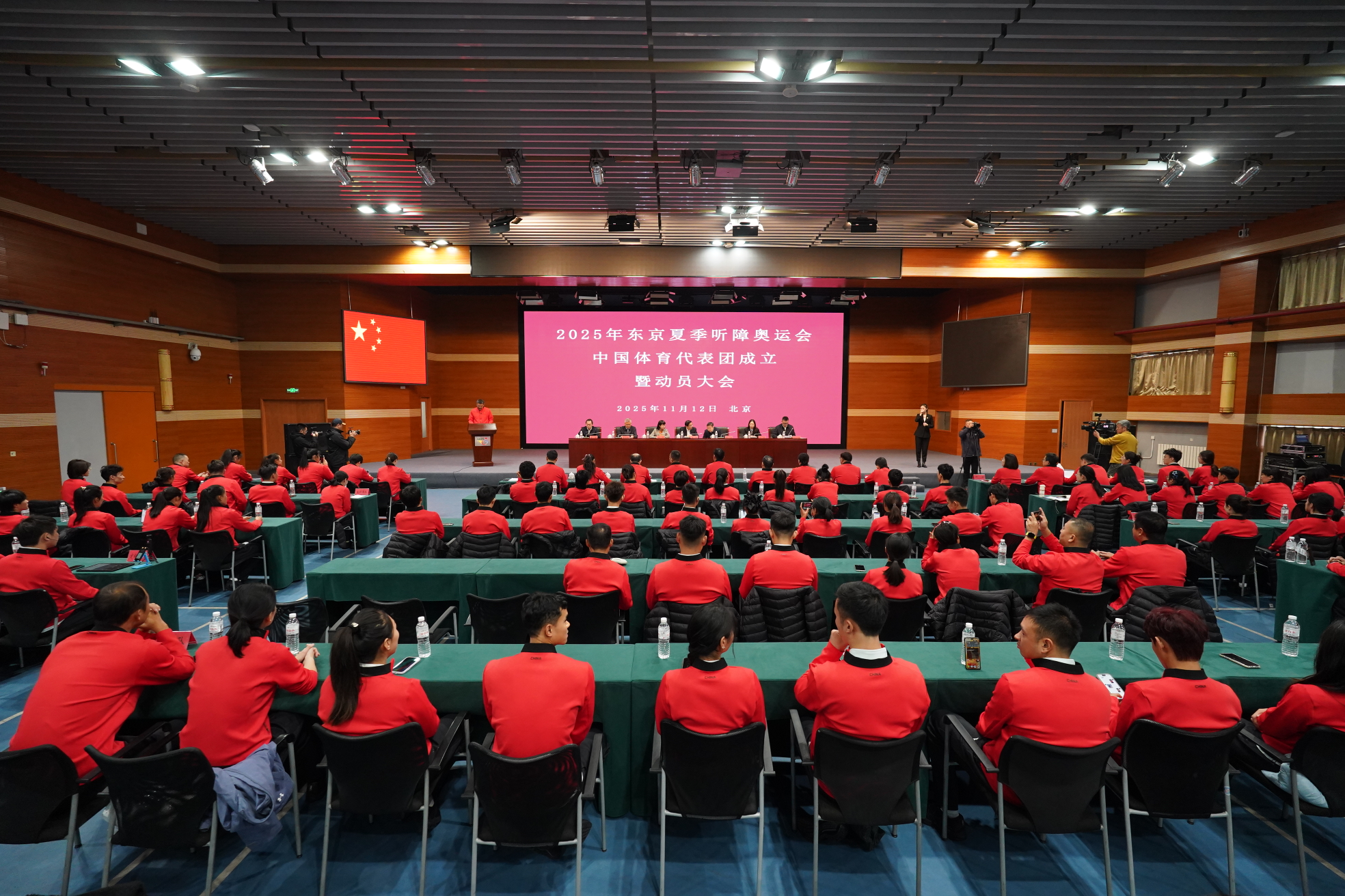 11月12日,2025年东京夏季听障奥运会中国体育代表团成立暨出征动员大会在北京举行,代表团的101名运动员将参加此次赛事。