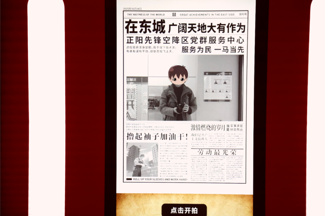 一楼的红色文创产品、三楼的正阳展厅,以及可现场制作的个人纪念报纸,都是值得留念的风景,也是朋友圈的高质量素材。