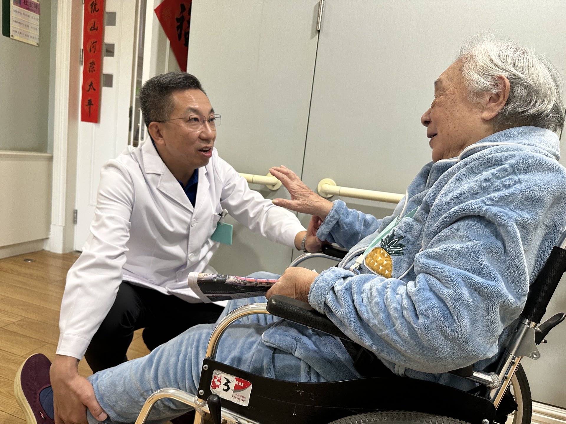 “有闫院长在,我们就特别放心。”一位家属道出了大家的心声。今年9月,院里一位老人在房间内摔倒骨折,做完手术出院后,老人心情十分低落。闫志军为老人量身定制了康复方案,如今老人已经能够坐着轮椅在楼道里活动。“您恢复得真好,比我们预想的还要好!”闫志军蹲下身子,一直给老人鼓励。“到元旦您就能下地走路了,要对自己有信心!”他的一席话,让老人开心不已。