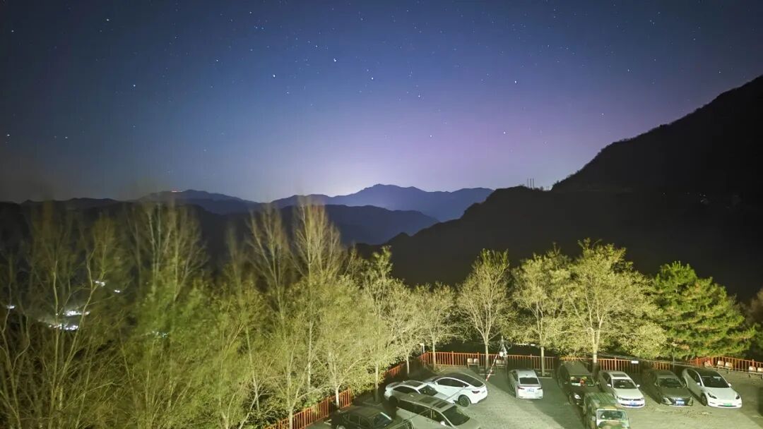 11月13日凌晨,受强烈地磁暴影响,北京门头沟百花山国家级自然保护区上空出现壮观极光。保护区工作人员用手机成功捕捉到这一瞬间。此次极光清晰可见,充分证明了京西福地门头沟作为生态涵养区优良的暗夜观测条件,展现了区域生态环境持续改善的显著成果,为首都夜空增添了梦幻般的色彩。