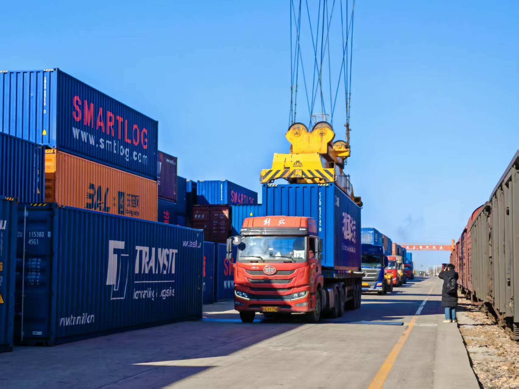 今年以来,在铁路和海关等部门的协同支持下,石家庄国际陆港充分发挥华北区域中欧班列集结中心功能优势,持续加密开行频次,构建畅通高效、多向延伸、陆海互联的国际物流通道。今年前10个月,已累计运送货物超99000标箱,货重120多万吨,货值达105.7亿元人民币,日均到发班列3到4列,去程与回程比例达1:1.8,实现双向重载、高效运行。