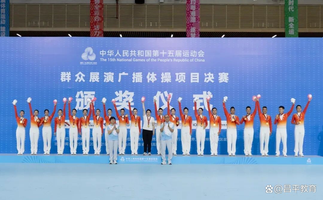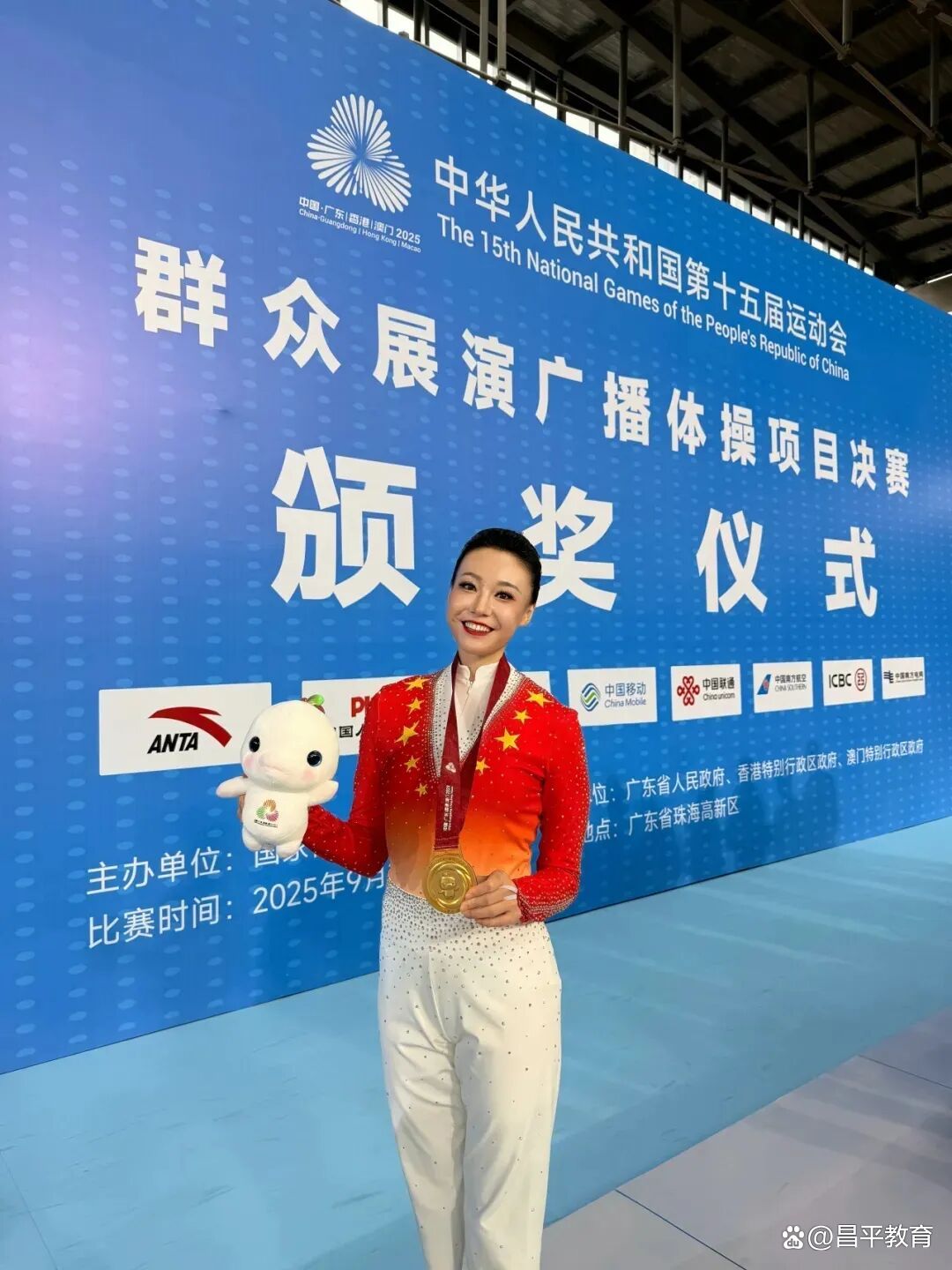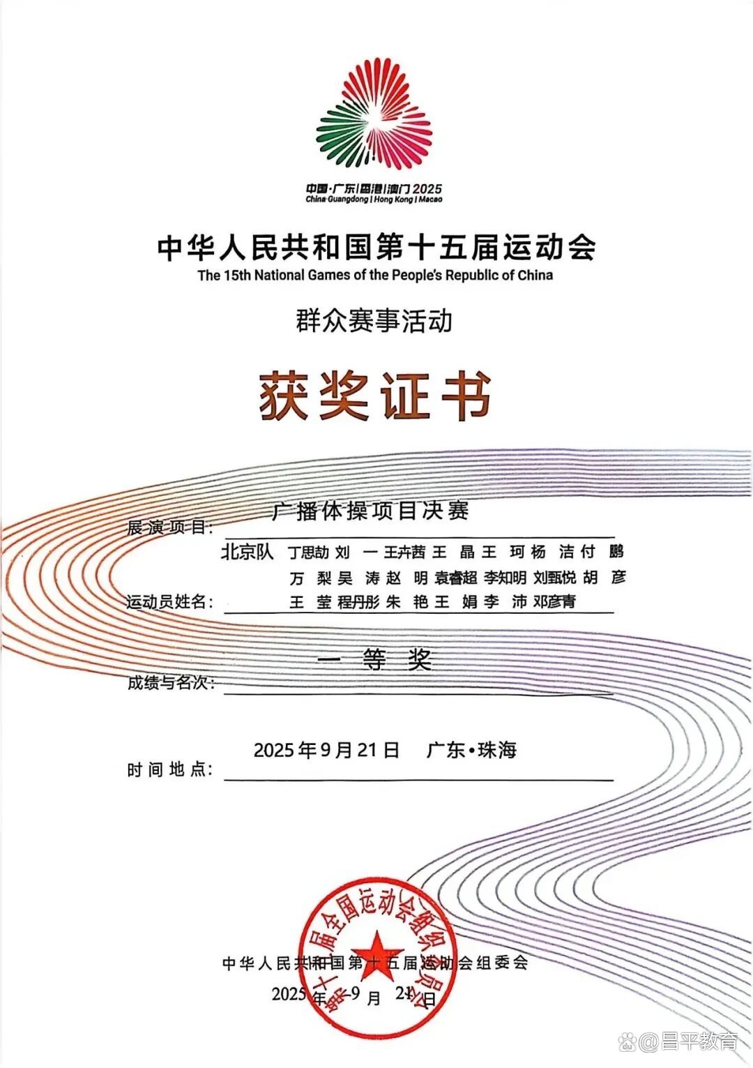 北师大二附中未来科学城学校团委书记、体育组教师王卉茜,经过层层选拔,作为全市高中教师的唯一代表,加入广播体操项目北京队(团队20人)。经过5个月的刻苦训练,7月份以预赛第一的成绩进入决赛。9月份在珠海组织的全运会广播体操项目决赛中,以绝对优势夺得冠军!