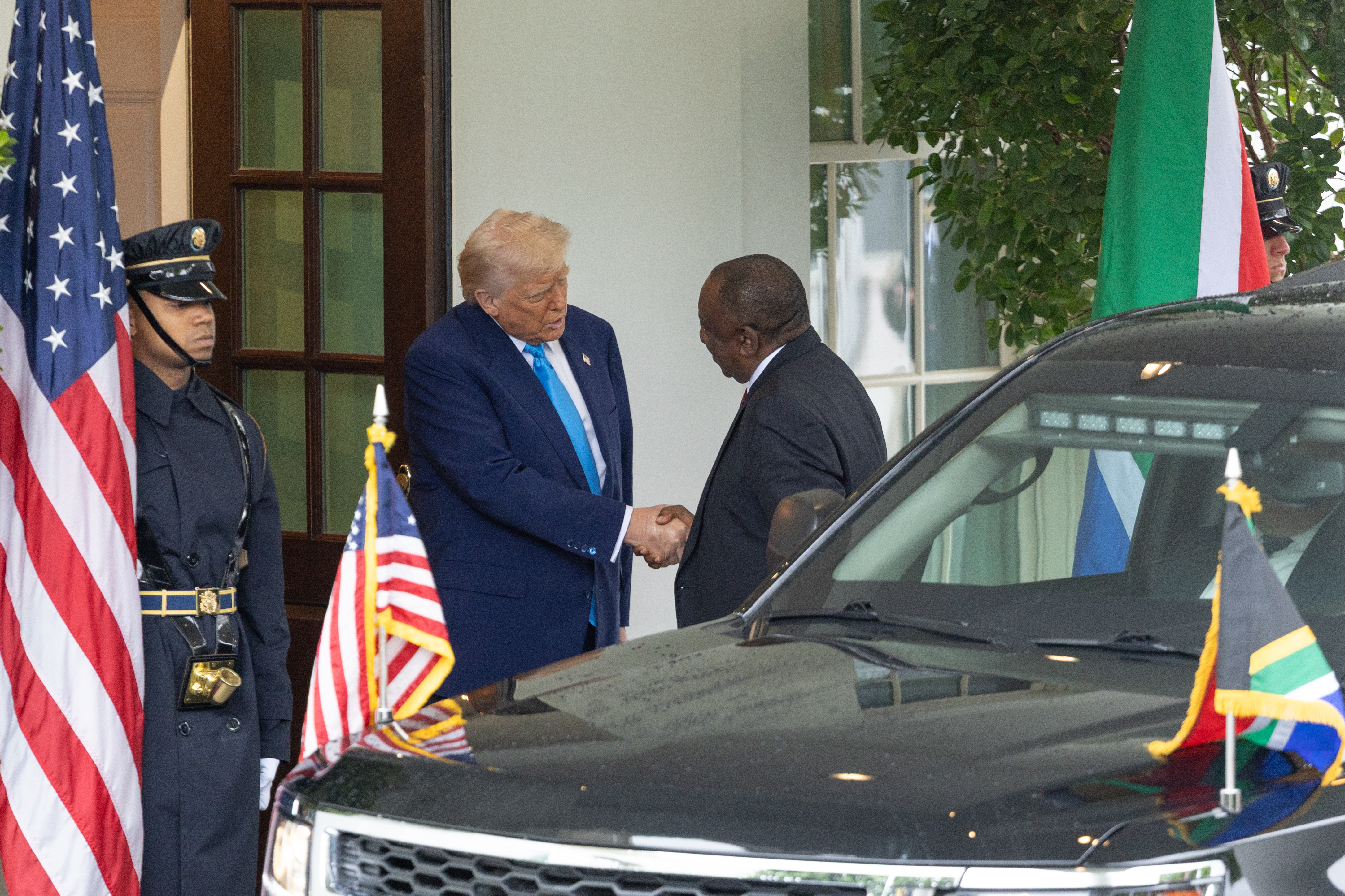 5月21日,特朗普在白宫会见到访的拉马福萨时突然展示一些视频和剪报,指责南非正出现“针对白人的种族屠杀”。在这场被美国媒体称为“伏击”的会见中,特朗普突如其来的举动,导致本想借此行改善两国关系的拉马福萨大吃一惊。拉马福萨当场否认,并指出特朗普所谓南非白人正逃离暴力和“种族主义”法律的说法站不住脚。