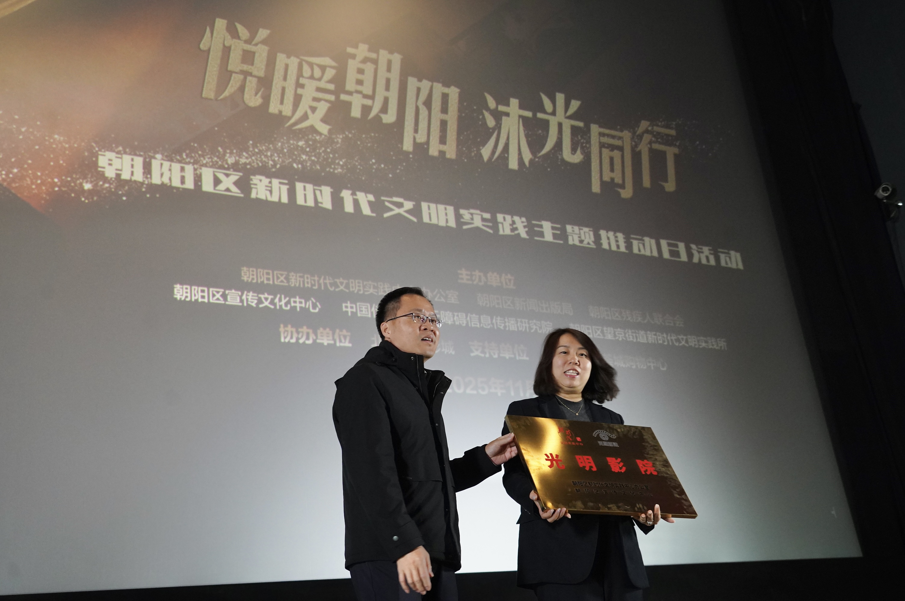 活动中,朝阳区正式为北京万达影城(望京店)授牌“光明影院”,这也是全市首家新时代文明实践“光明影院”。万达影城京津区域总经理赵元表示,将切实履行企业社会责任,持续优化无障碍观影服务,从硬件完善、员工专项培训、特殊群体需求对接三方面发力,让影城成为不同群体感受文化均等化、融入社会的重要平台。