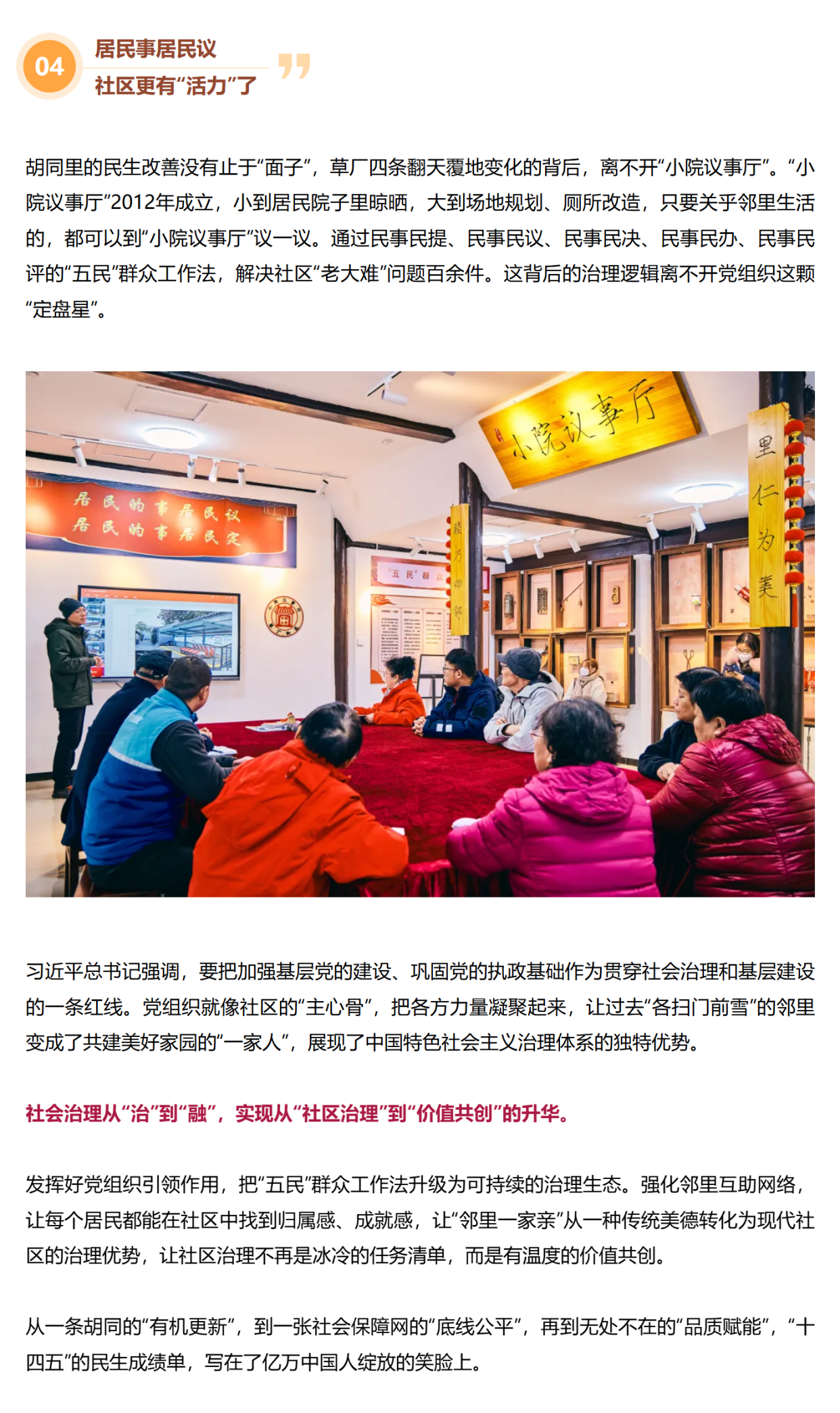 习近平总书记指出,“中国式现代化,民生为大”。草厂四条胡同承载的“历史与现代融合”理念,不仅指引着城市更新,更蕴含着深刻的民生哲学,那就是——最好的民生保障,意味着“历史”不被遗忘,“未来”触手可及;“生活”更加安全,“发展”更加公平。这份可感可及的民生温暖,正是中国式现代化最动人的价值底色!
