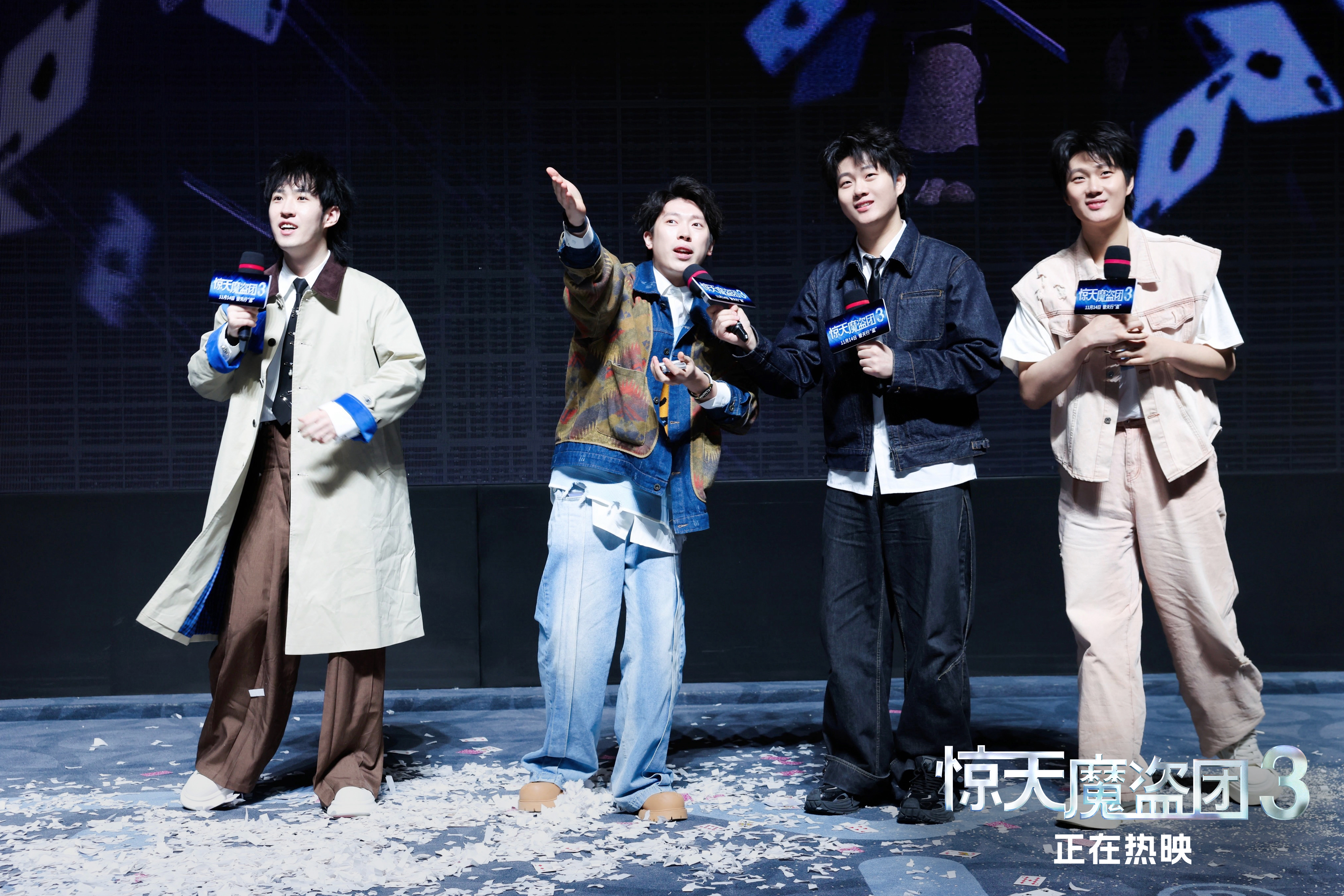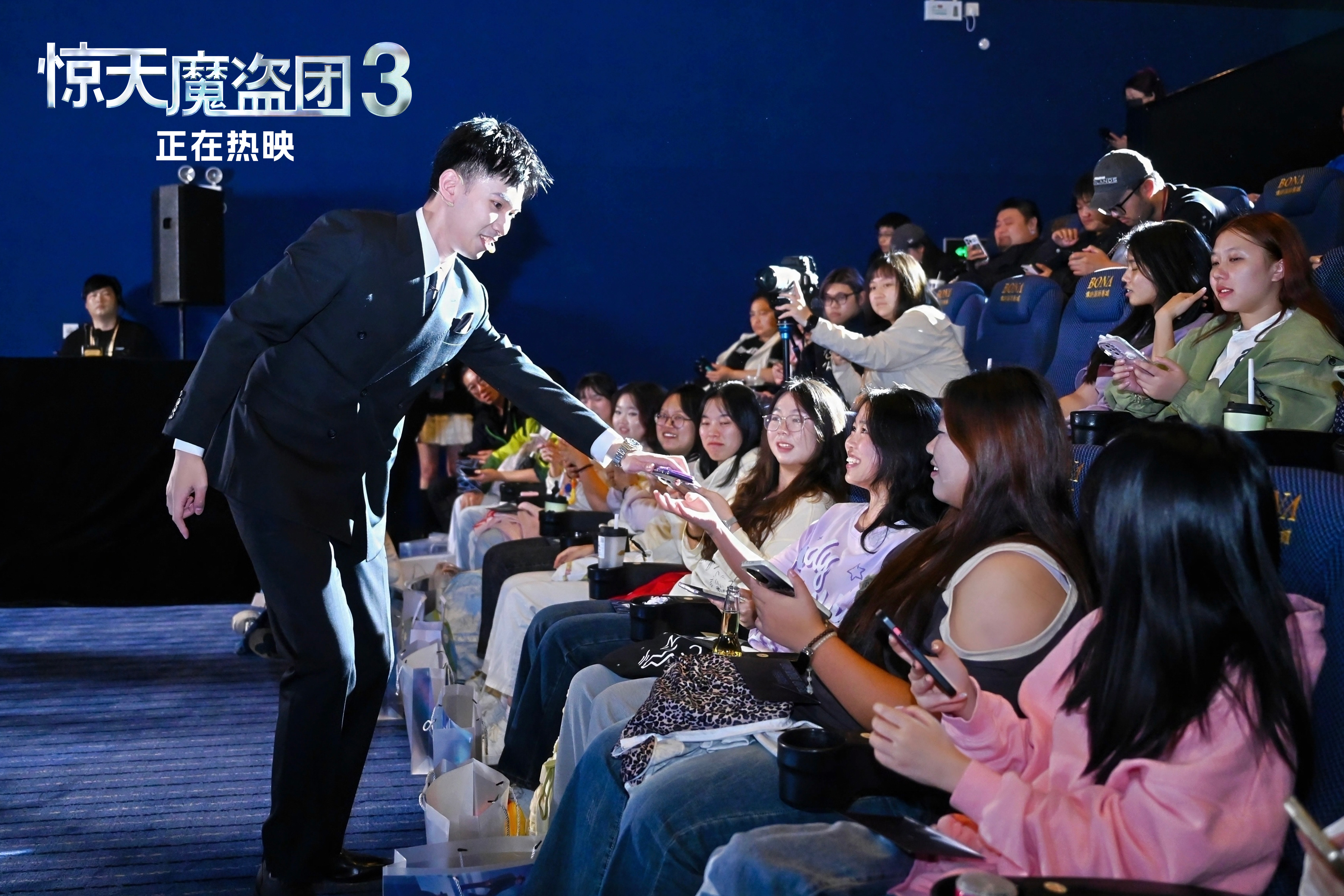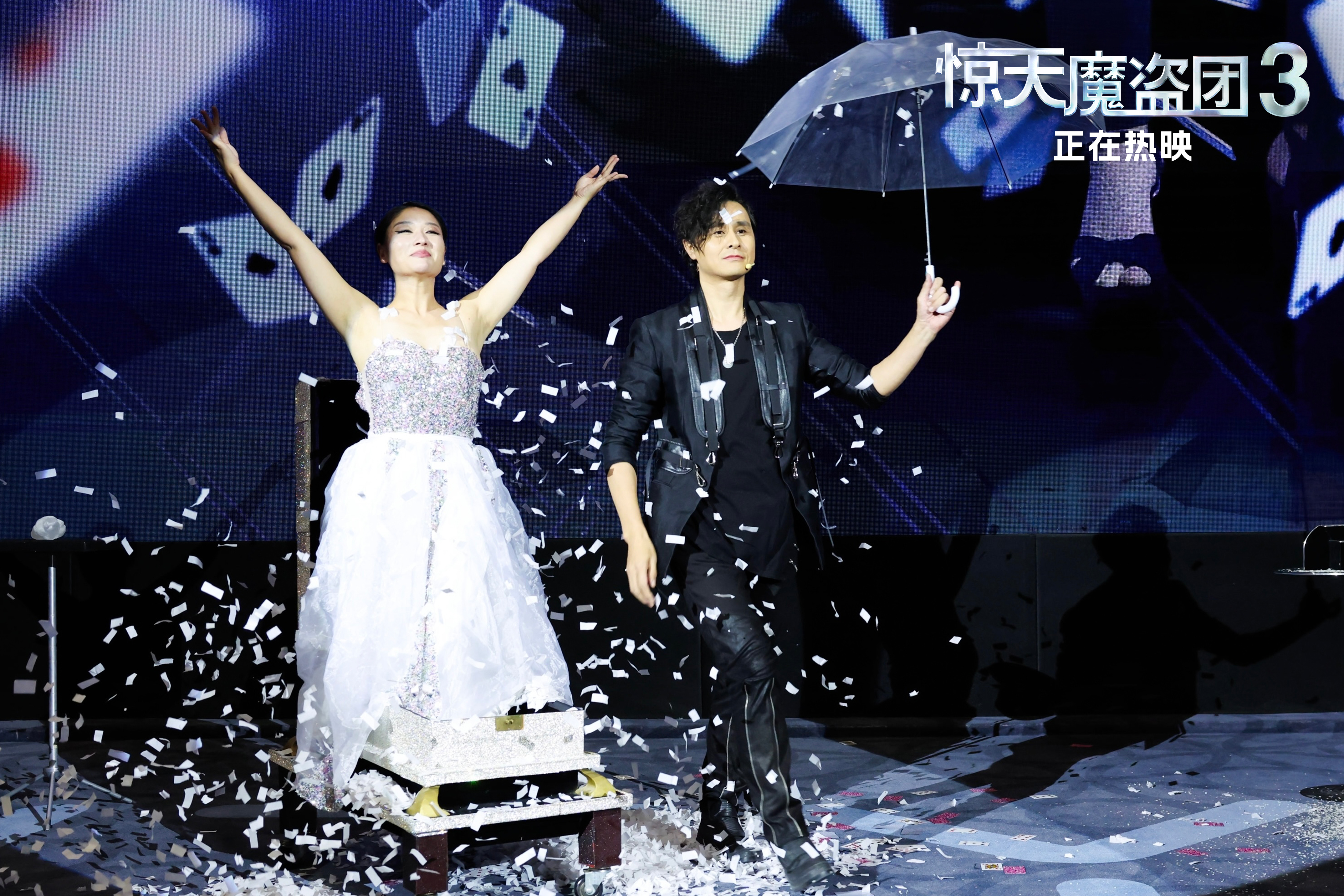 首映礼尾声,梦幻“钻石雨”漫天降落,观众纷纷举手机记录,激动喊道:“像真的在‘骑士团’的魔术大秀现场,太震撼了!”尖叫与掌声此起彼伏,将狂欢氛围一次次推向顶峰。