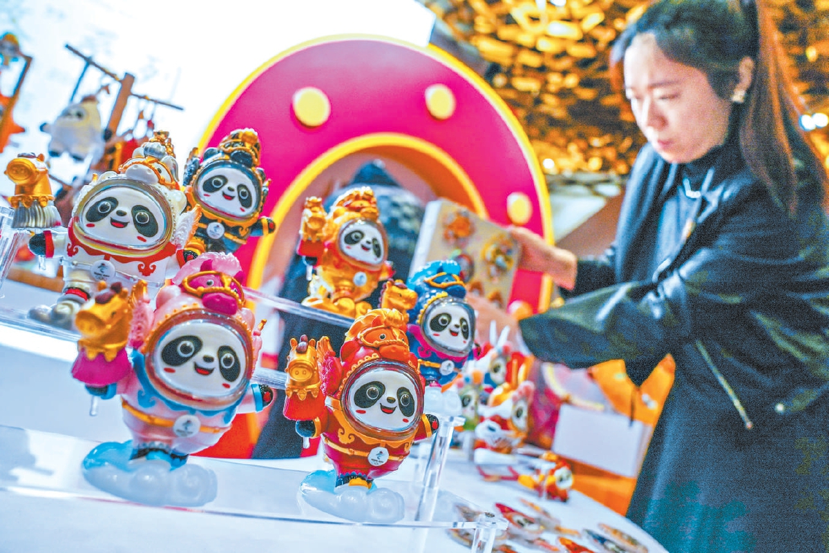 今年授权产品丰富多样,涵盖毛绒、摆件、徽章、冰箱贴、陶瓷、钥匙扣、明信片、贵金属、抱枕等近百款产品。