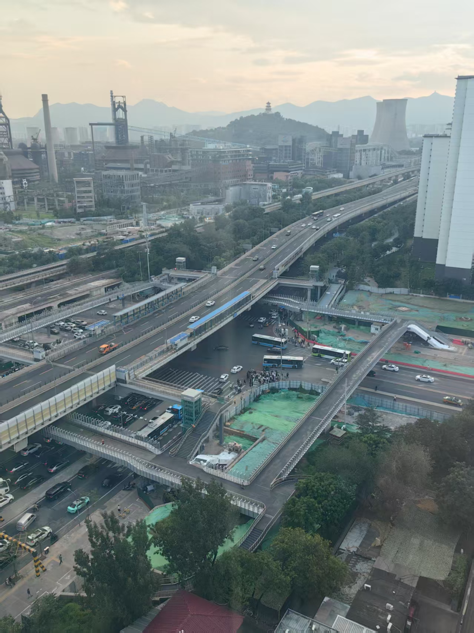 石景山区金安桥轨道微中心是地铁6号线、11号线、S1线三轨换乘核心,地铁站8个出入口分列古城街道与金顶街街道,同时叠加多条公交线路,导致金安桥路口高峰时段人车流量大、混行抢道问题突出。为积极回应群众诉求,两街道联合石景山区城管委共同推进改造工作,该项目被纳入全市首批综合型轨道微中心建设项目。