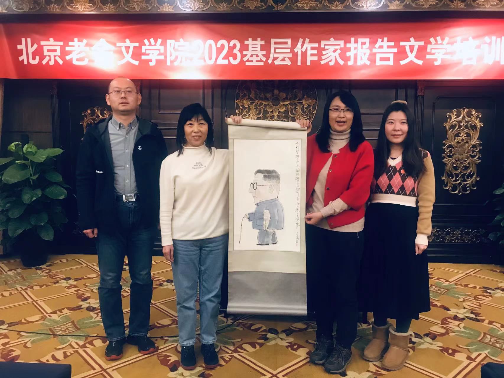 2023年2月4日,在老舍文学院学习结业的那天,我将手中这幅寄托着何老情感的画像,郑重捐给老舍文学院,由周敏院长代收并永久收藏。
