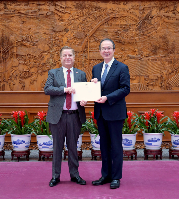 洪磊接受巴勒斯坦新任驻华大使递交国书副本