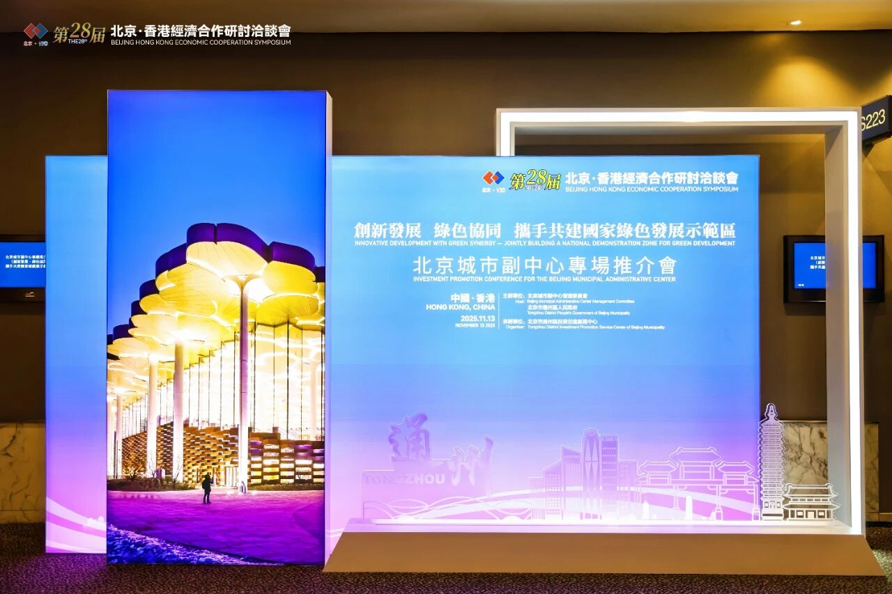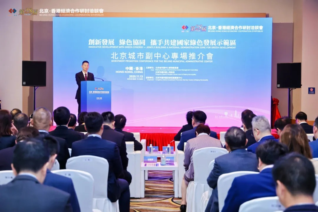 11月12日至13日,第二十八届北京·香港经济合作研讨洽谈会,在香港会议展览中心举办。作为本届洽谈会的重要组成部分,城市副中心专场推介会以“创新发展,绿色协同,携手共建国家绿色发展示范区”为主题,通过项目签约、合作仪式、系列主题推介等环节,推动了北京城市副中心与香港企业的深度合作。
