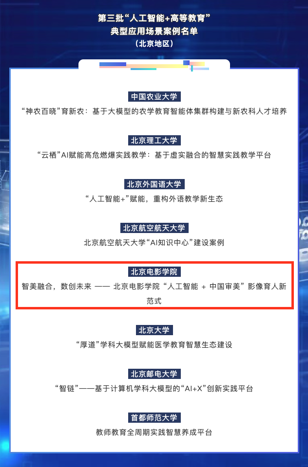 值得一提的是,学校联合中国科学院、北京市广电局、清华大学、国家大剧院、北京邮电大学等单位,积极开展“人工智能+中国审美”影像数智化研究。通过将中华美学精神融入人工智能技术应用,将AI工具深度嵌入影视教学,提升学生对中国审美价值的自主认知与表达能力,打造具有中国特色的智能影像教育体系。