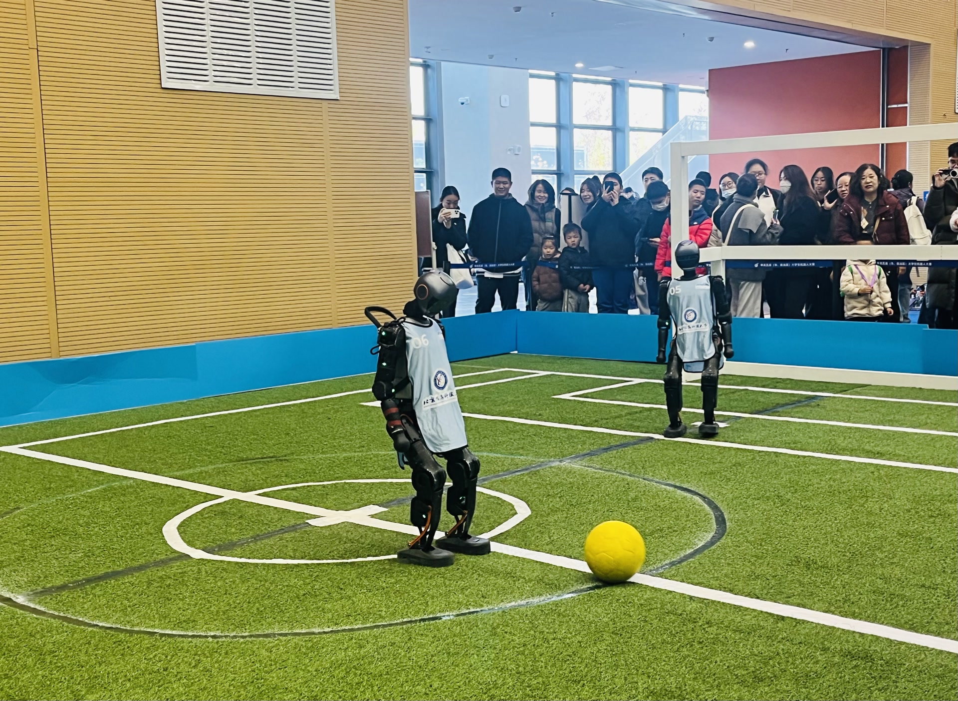 大赛首次设置类人足球机器人2V2竞赛,来自信息科大仪器科学与光电工程学院的团队获得了第一名。指导教师戴丽萍介绍,这项比赛要求机器人有仿人外观,具备自主感知和AI(人工智能)驱动能力。比赛重点考查机器人的视觉识别、路径规划和团队协作能力。