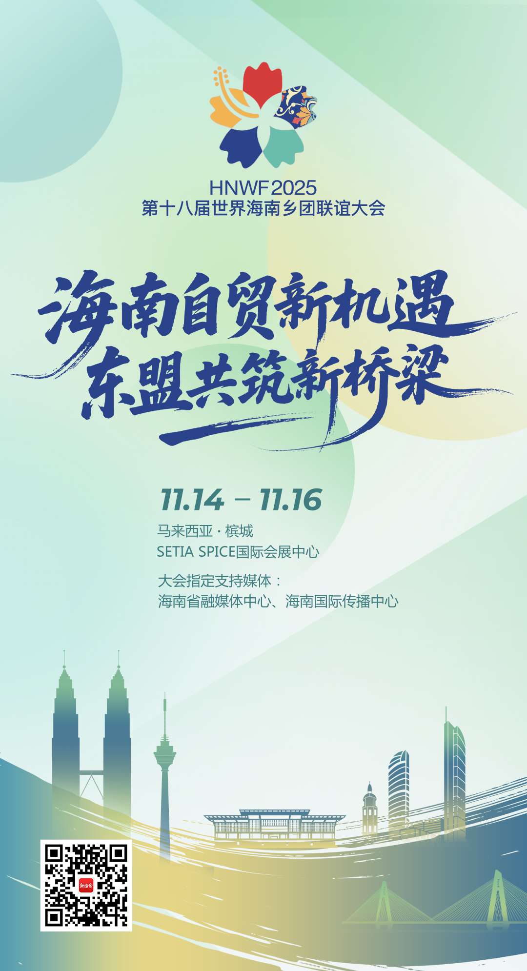 本届大会主办地马来西亚槟城与海南渊源深厚,两地于2013年11月7日正式缔结为友好省州,为两地在经济、文化、教育及社会领域的合作交流奠定了坚实基础。今年12月,海南自贸港将启动封关运作。恰逢马来西亚担任2025年东盟轮值主席国,本届大会以“海南自贸新机遇,东盟共筑新桥梁”为主题,旨在通过此次国际交流,深化海南与东盟区域的联结与合作,拓展乡团发展新契机,激发全球海南群体的创新思维与协作潜力。