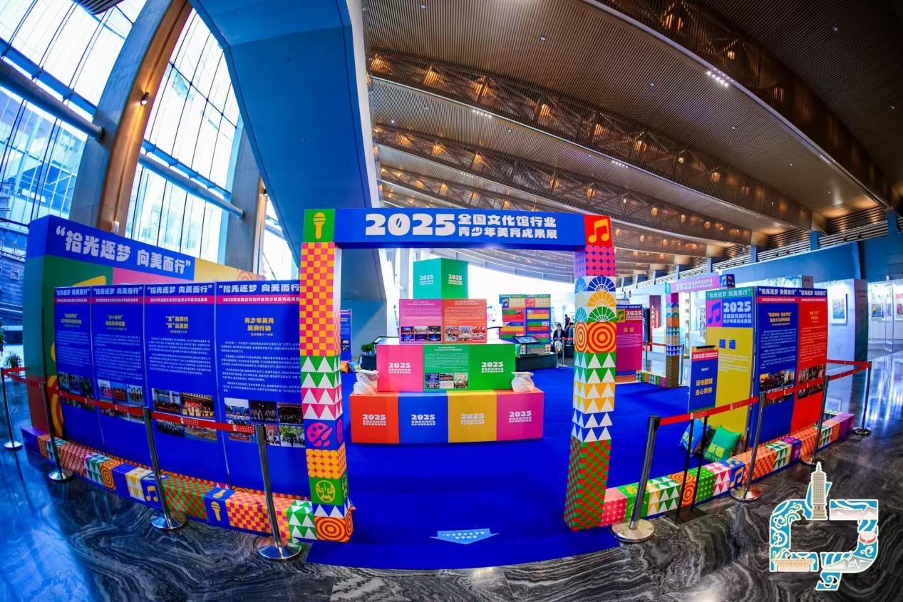 年会期间,在北京大运河博物馆共享大厅、北京城市图书馆大观厅等场馆同步推出了9场主题展览。数字文化馆建设十年展,带领观众深入了解十年来数字技术与公共文化服务深度融合的实践探索。国家文艺院团公共文化服务资源直达基层展,展示了十家文化和旅游部直属文艺院团基本情况、适合基层演出的剧(节)目资源、开展文艺培训辅导的专业能力、赴基层参与公共文化服务的成功案例等。中国现代民间绘画展,展出大运河沿岸及各现代民间绘画创作地的优秀美术作品,提供AI机器人导览、打卡集章和文创市集等互动。全国青少年美育成果展,展示文化馆携手中小学、社会主体开展青少年美育的特色亮点与经验分享,推广了一批具有示范引领性的青少年美育创新案例。AI+全民艺术普及数字体验展,通过“AI+”互动体验,呈现全民艺术普及创新思路,点亮文化馆未来图景。文化馆新空间VR体验展,运用VR技术,让红色历史“活”起来,让非遗可触摸、可共情。北京群众文化服务七十载历程展,展现了一部“人民创造文化,文化滋养人民”的生动史诗。 “文艺赋美乡村”浙江创新实践展,邀请观众见证文艺如何成为乡村振兴的“精神引擎”,品读新时代文化自信自强的浙江答卷。通州区公共文化服务成果展,聚焦机制建设、设施布局、品牌活动、资源下沉、服务多元、数字化升级、非遗焕新、人才发展、示范引领9个板块,展示通州区近年来在公共文化服务领域的创新实践与发展成效。
