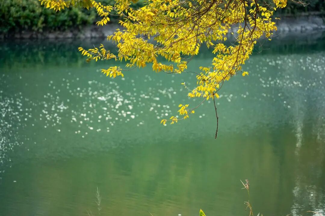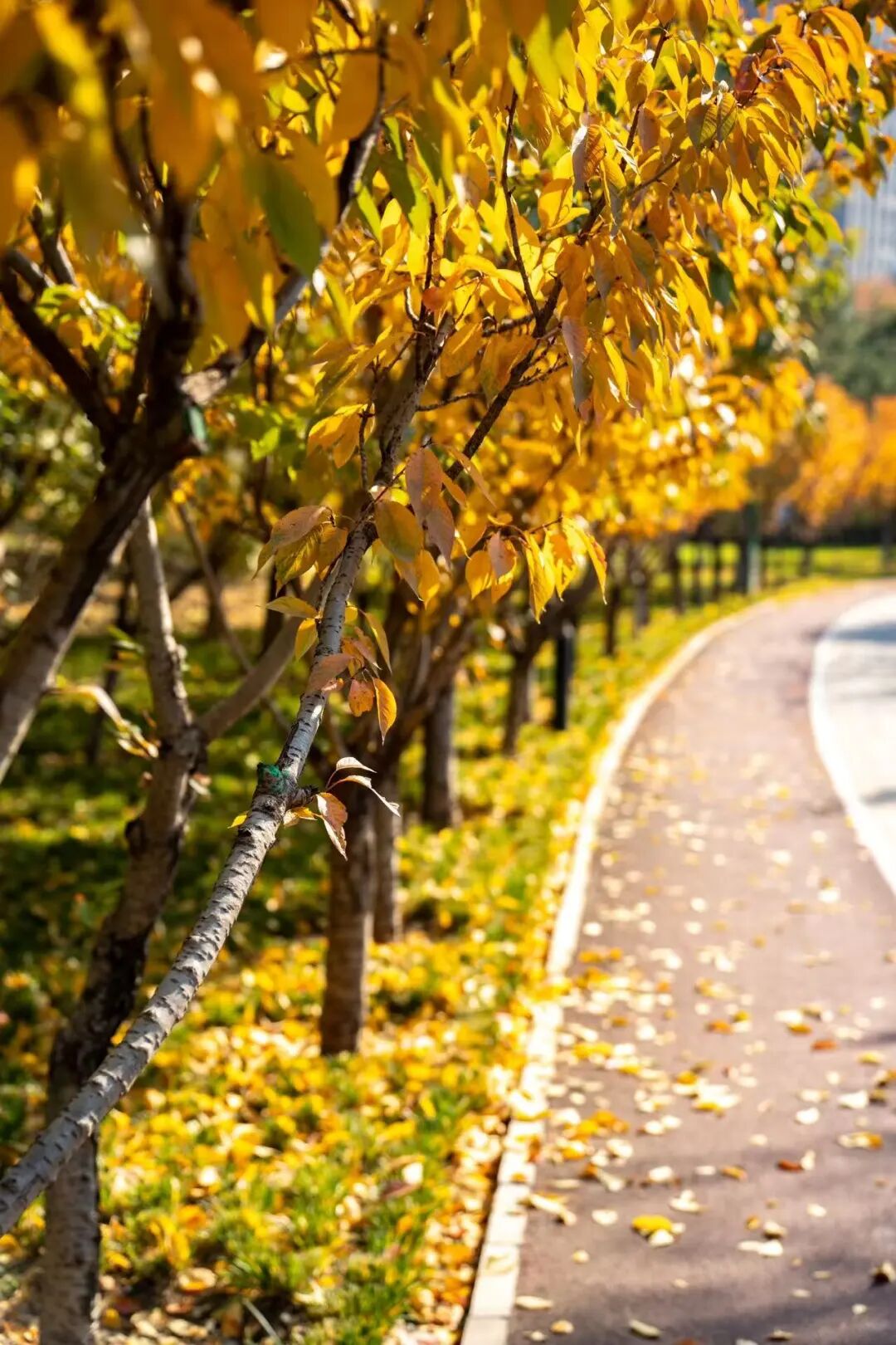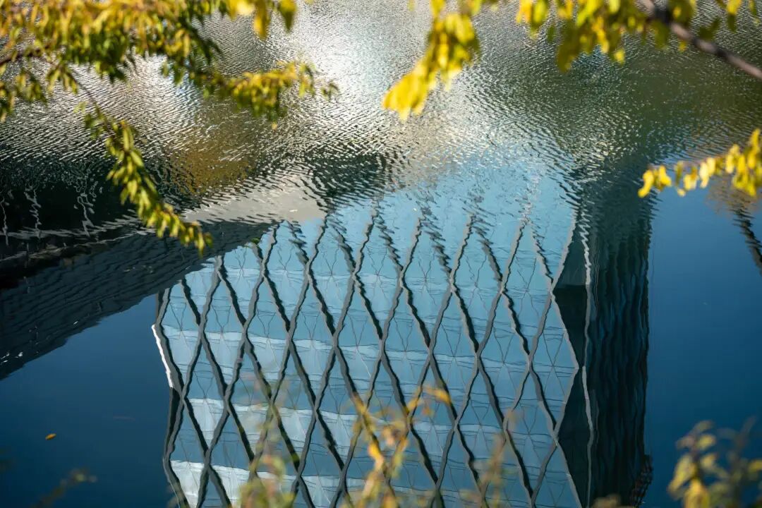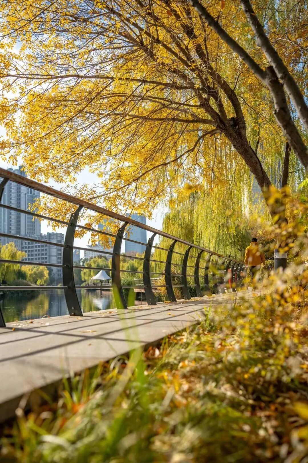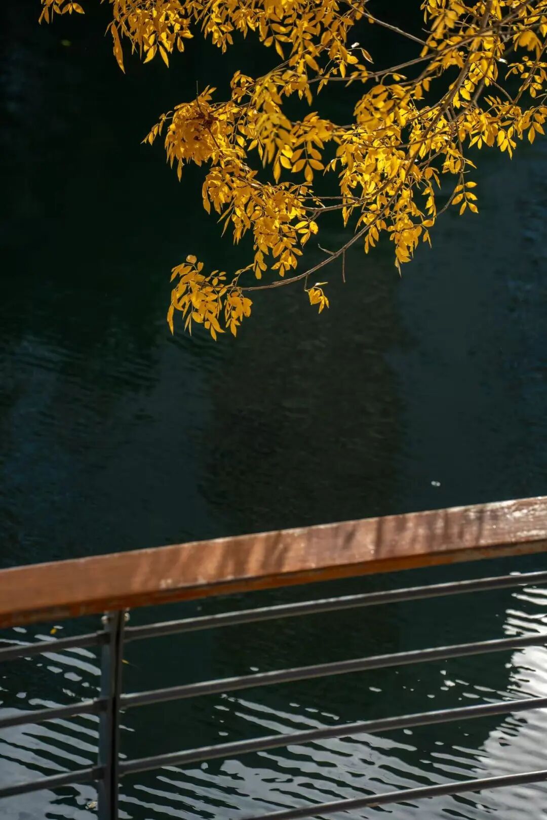 亮马河水面静如镜鉴,映着两岸金黄枝叶