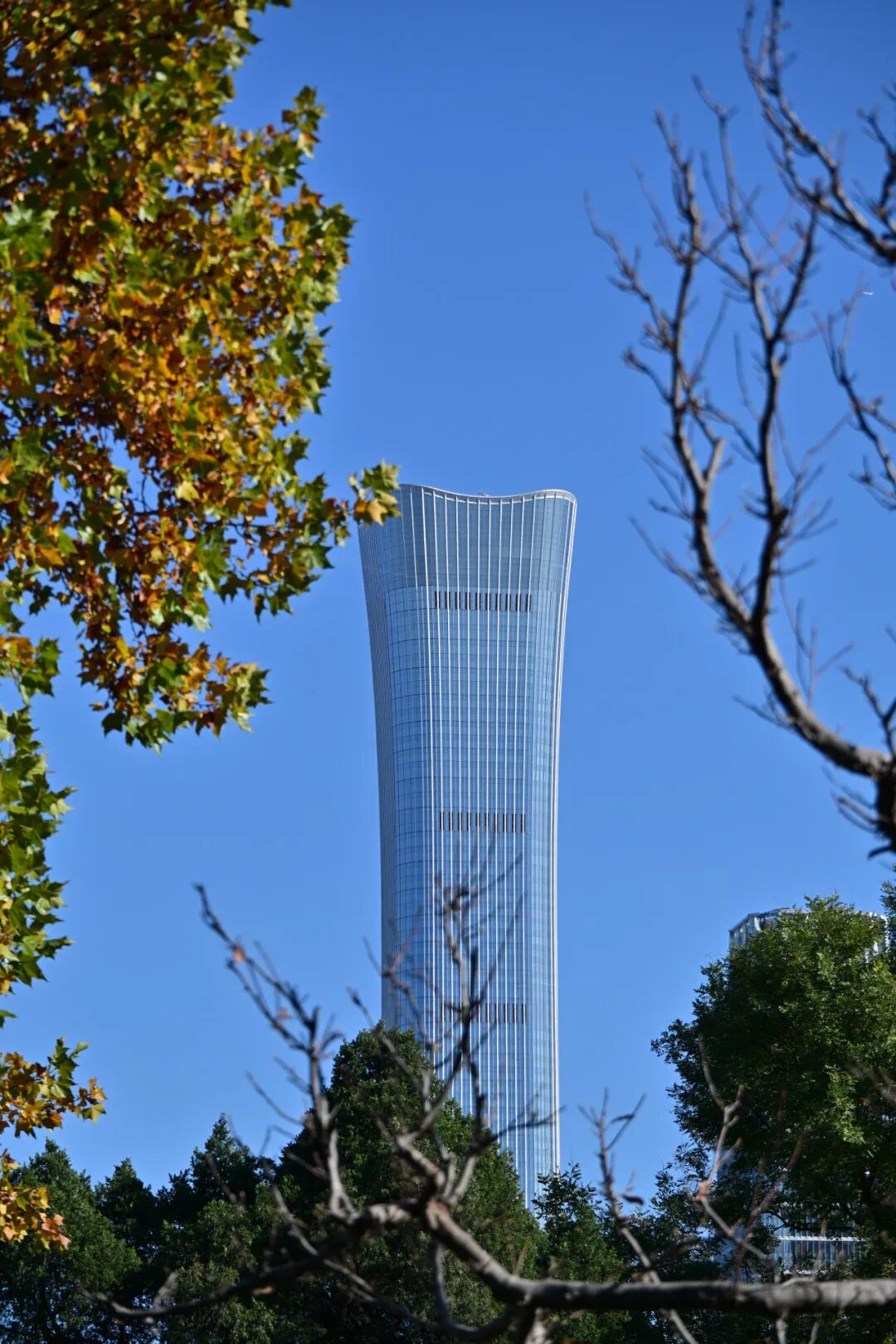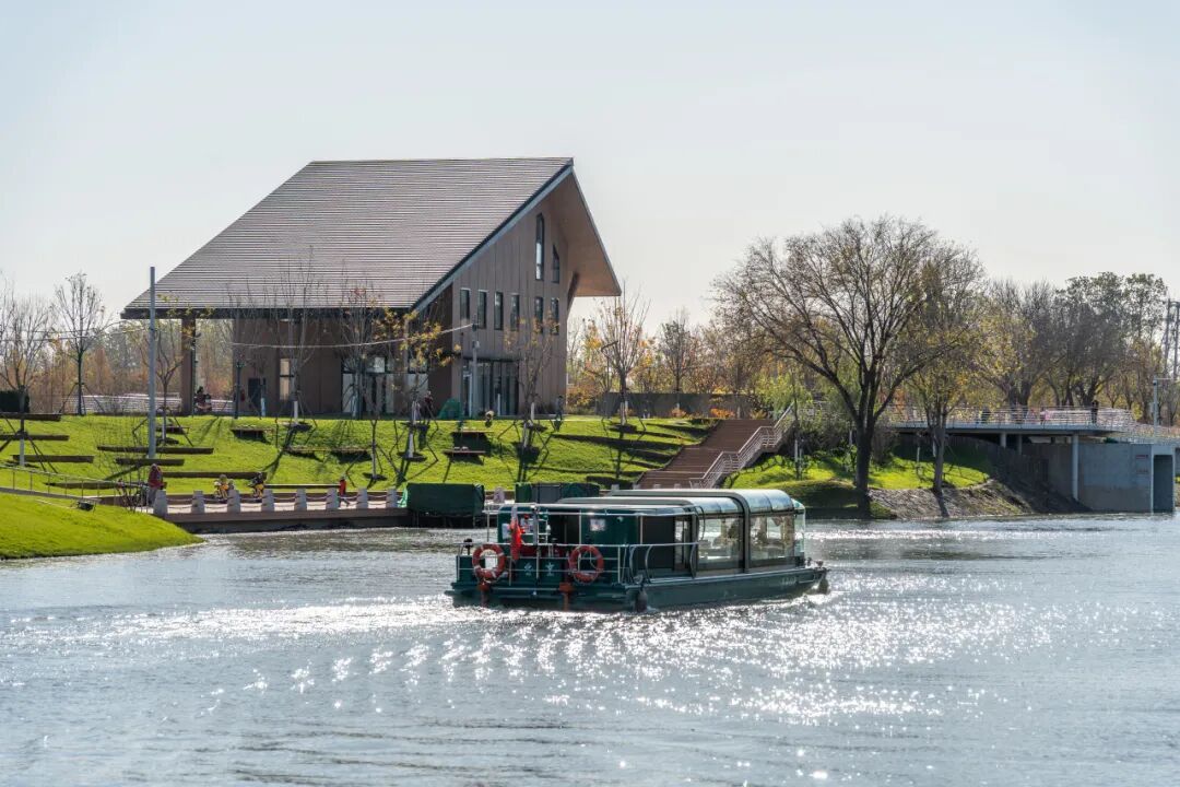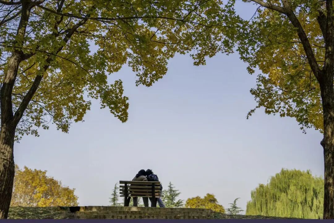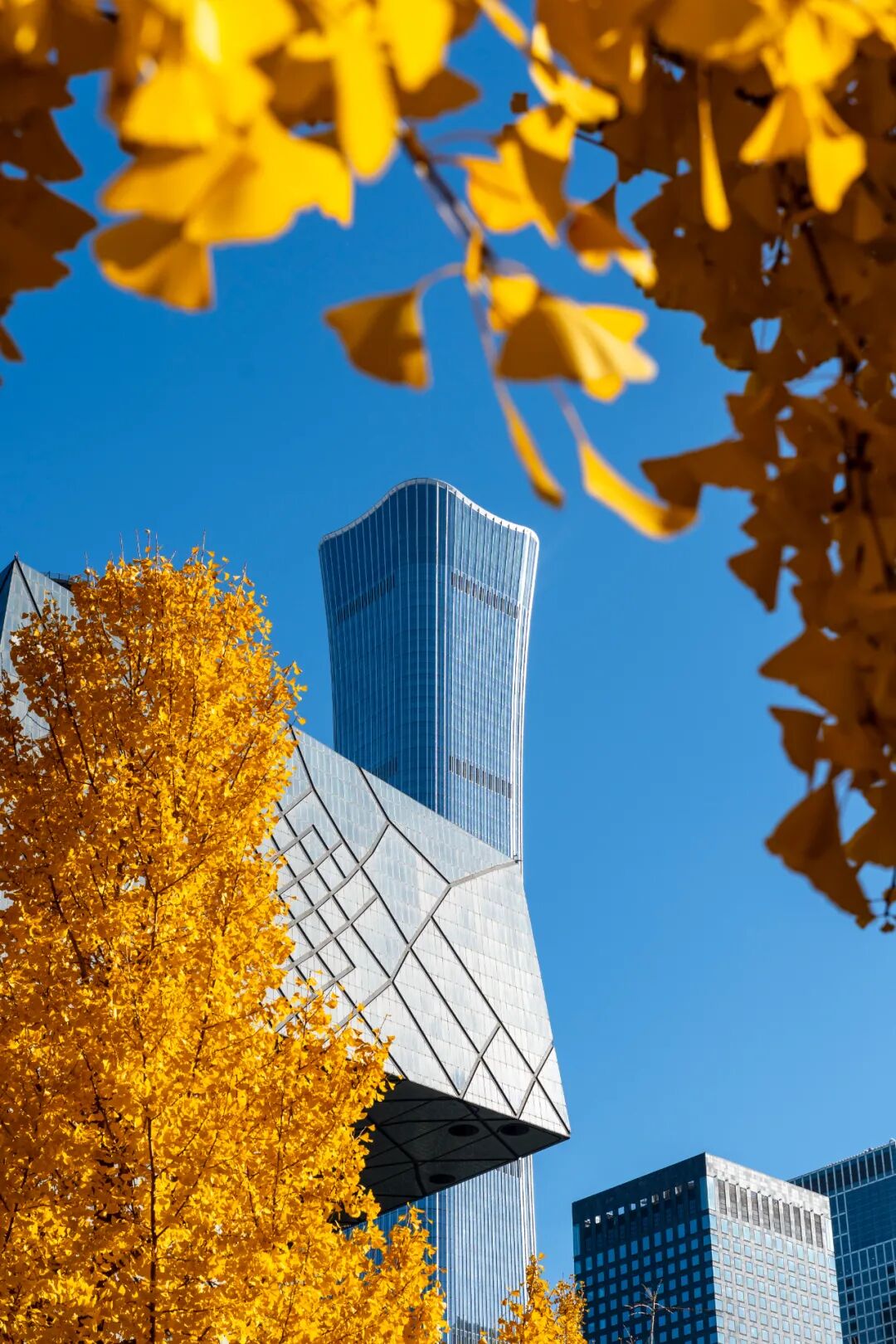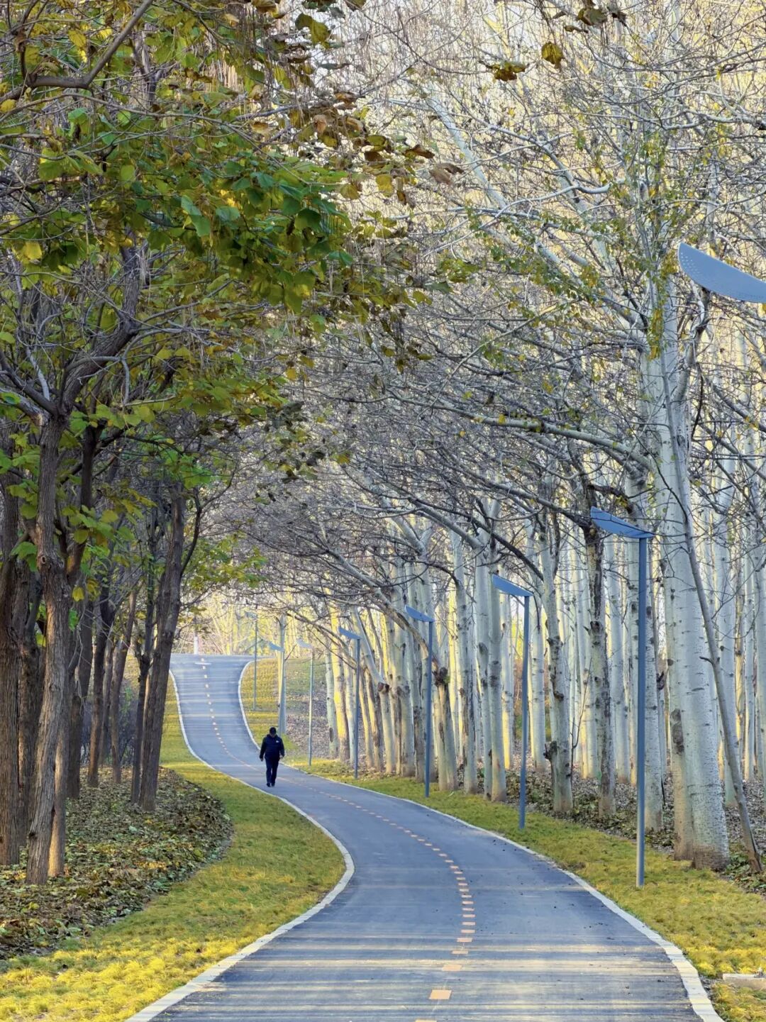 亮马河水面静如镜鉴,映着两岸金黄枝叶