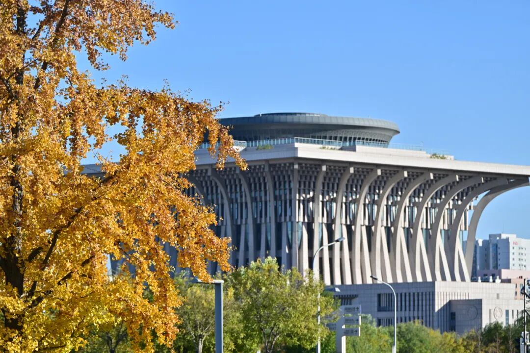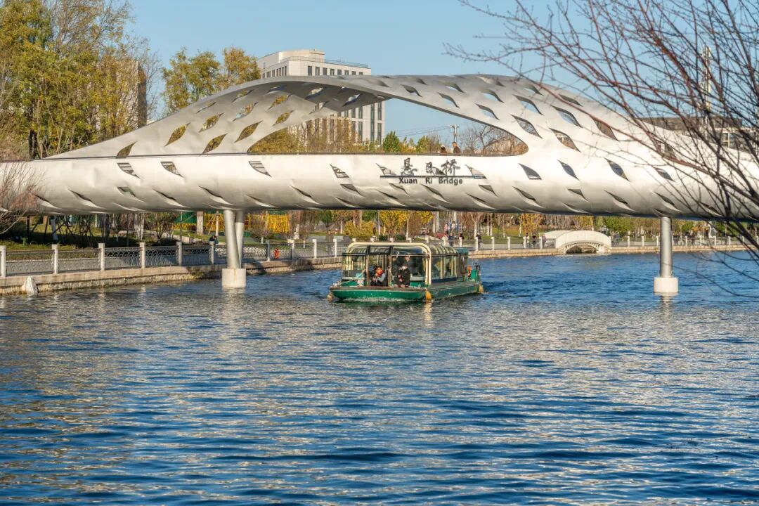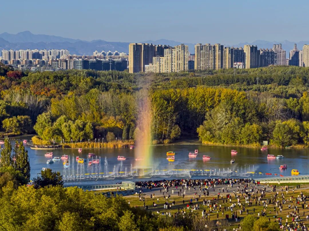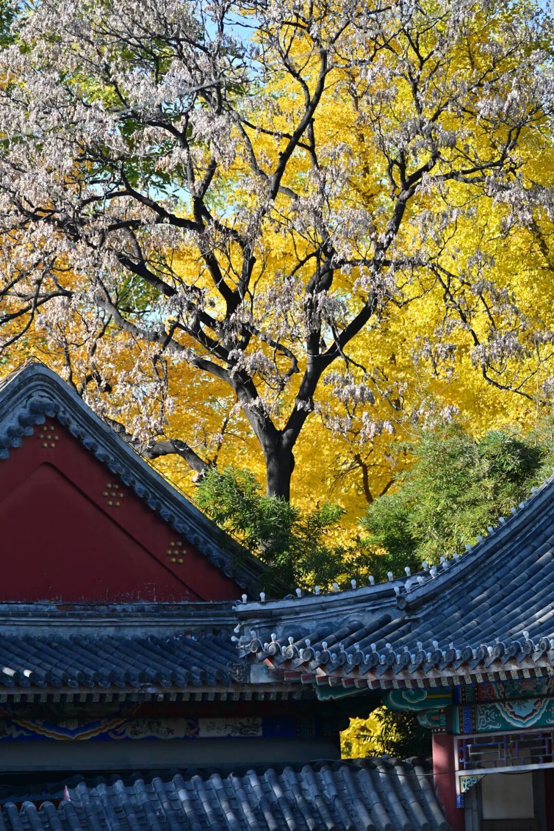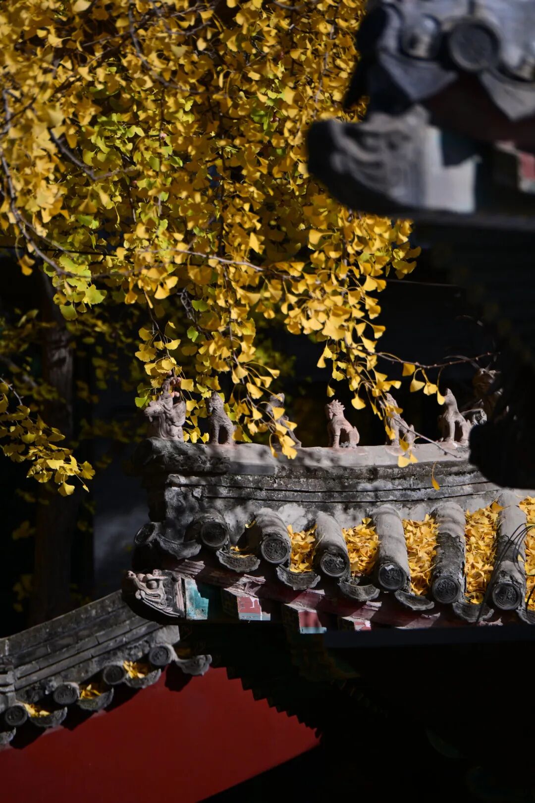 亮马河水面静如镜鉴,映着两岸金黄枝叶