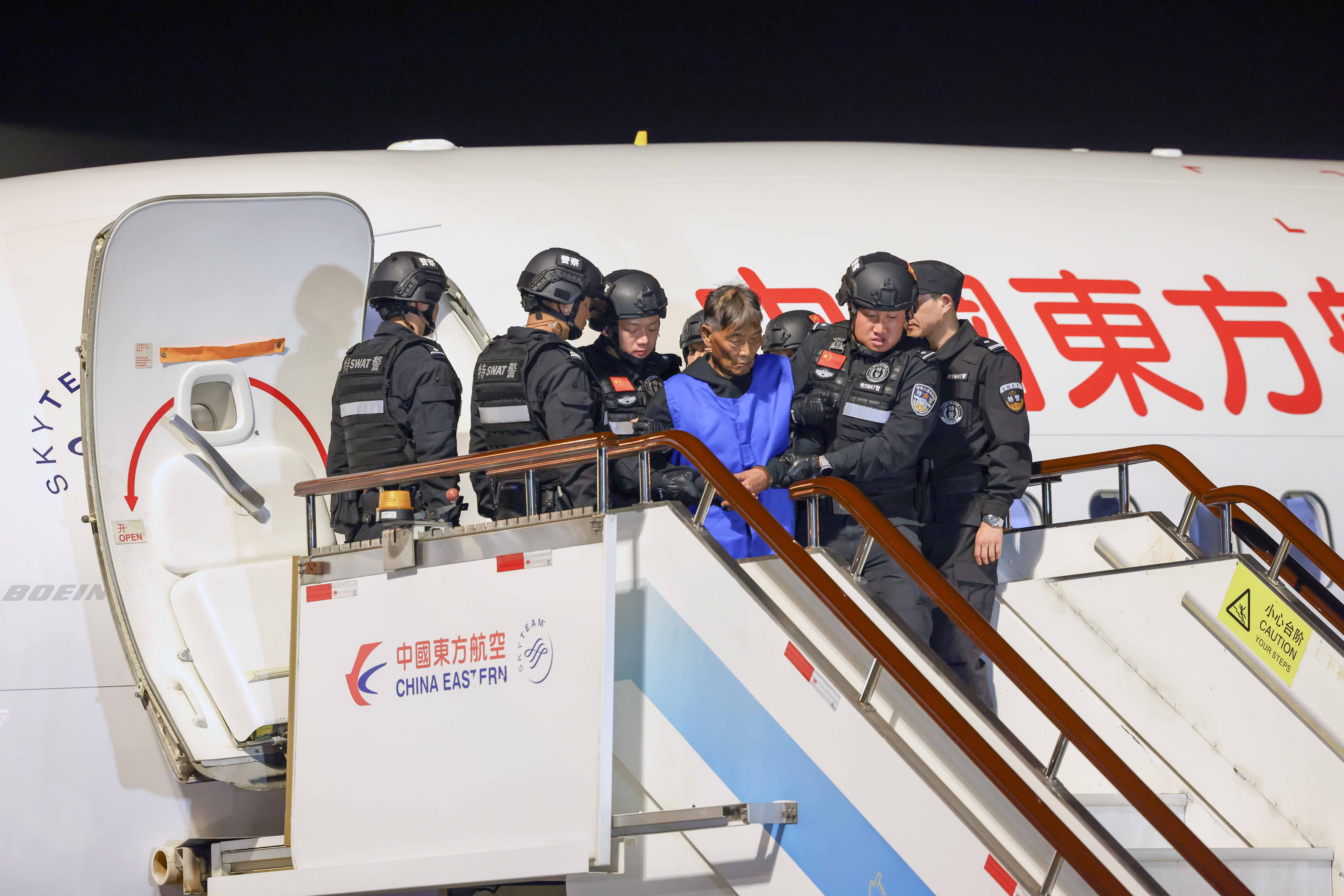 2024年1月30日,在云南昆明长水机场,缅北果敢电诈犯罪集团重要头目白所成被我公安机关成功押解回国。新华社记者 殷刚 摄