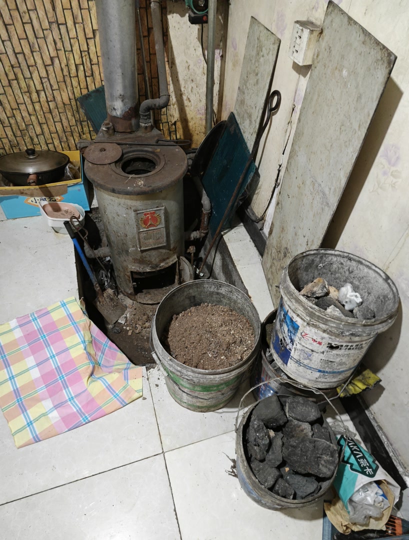王先生今年78岁,跟老伴住在这里已经40多年。作为少数仍在使用燃煤取暖的住户,冬季烧煤对于老两口来说是无奈之举。王先生家门口码放着半人多高的蜂窝煤,这些今年新购入的煤正在经历晾晒的过程。待到蜂窝煤内的水分挥发完,两位老人便会将煤一点点加到土暖气的灶眼内,每天的用量大约十几块。搬运、点炉子、掏炉灰,这些步骤不仅繁琐,还会弄得屋里和身上都是灰,却是老人冬天取暖的“必修课”。