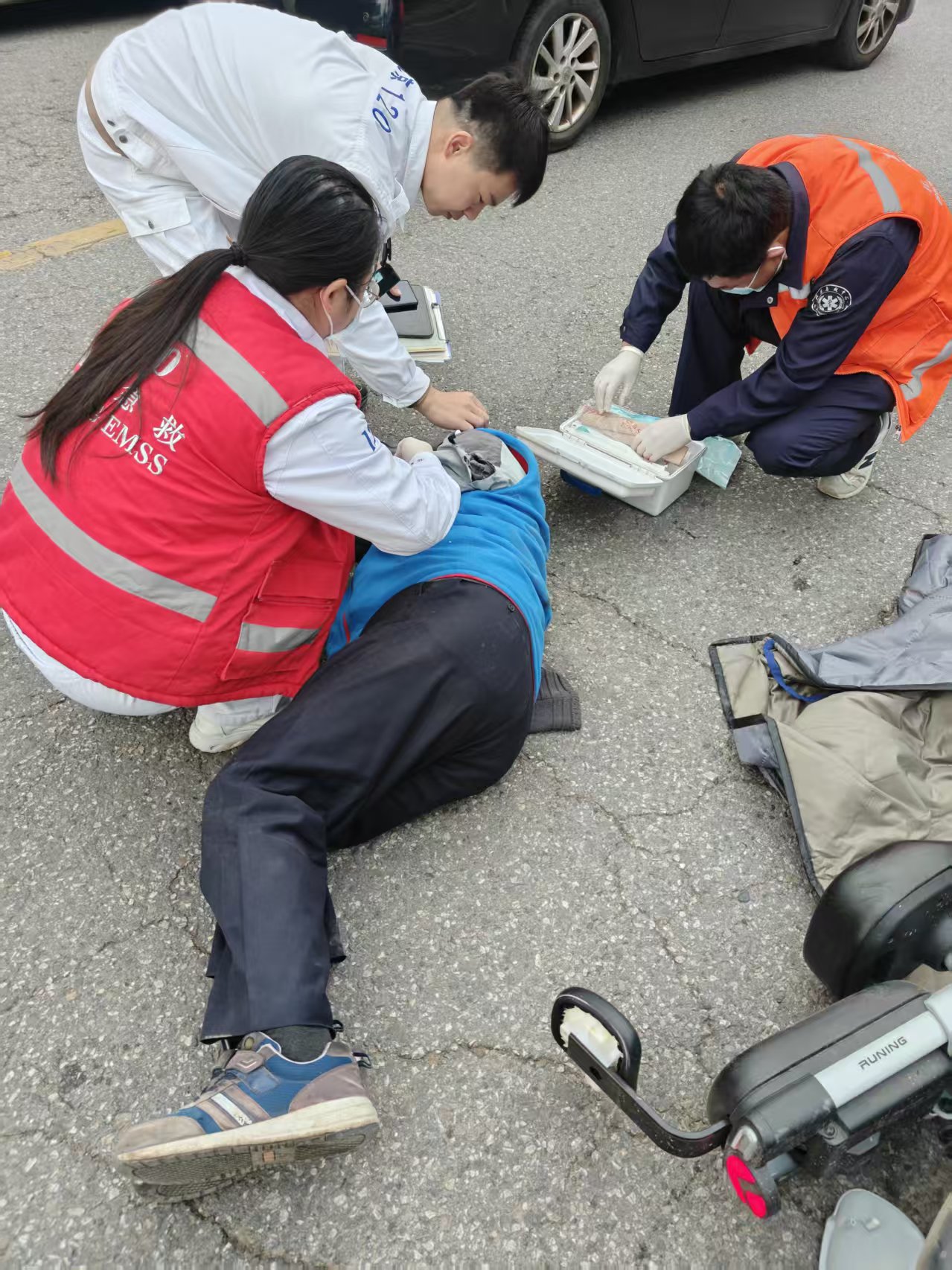 王庆坤向店经理张明利上报了此事,张明利当即表示救人要紧,若有客户投诉,相关责任由站点承担,让他安心参与救援。王庆坤迅速找来了锥桶设置起临时警示区,又把自己开的面包车停在来车方向的路边,打开双闪提醒过往车辆。在等待救援的过程中,王庆坤一直守护在老人身旁,并反复呼喊着老人。