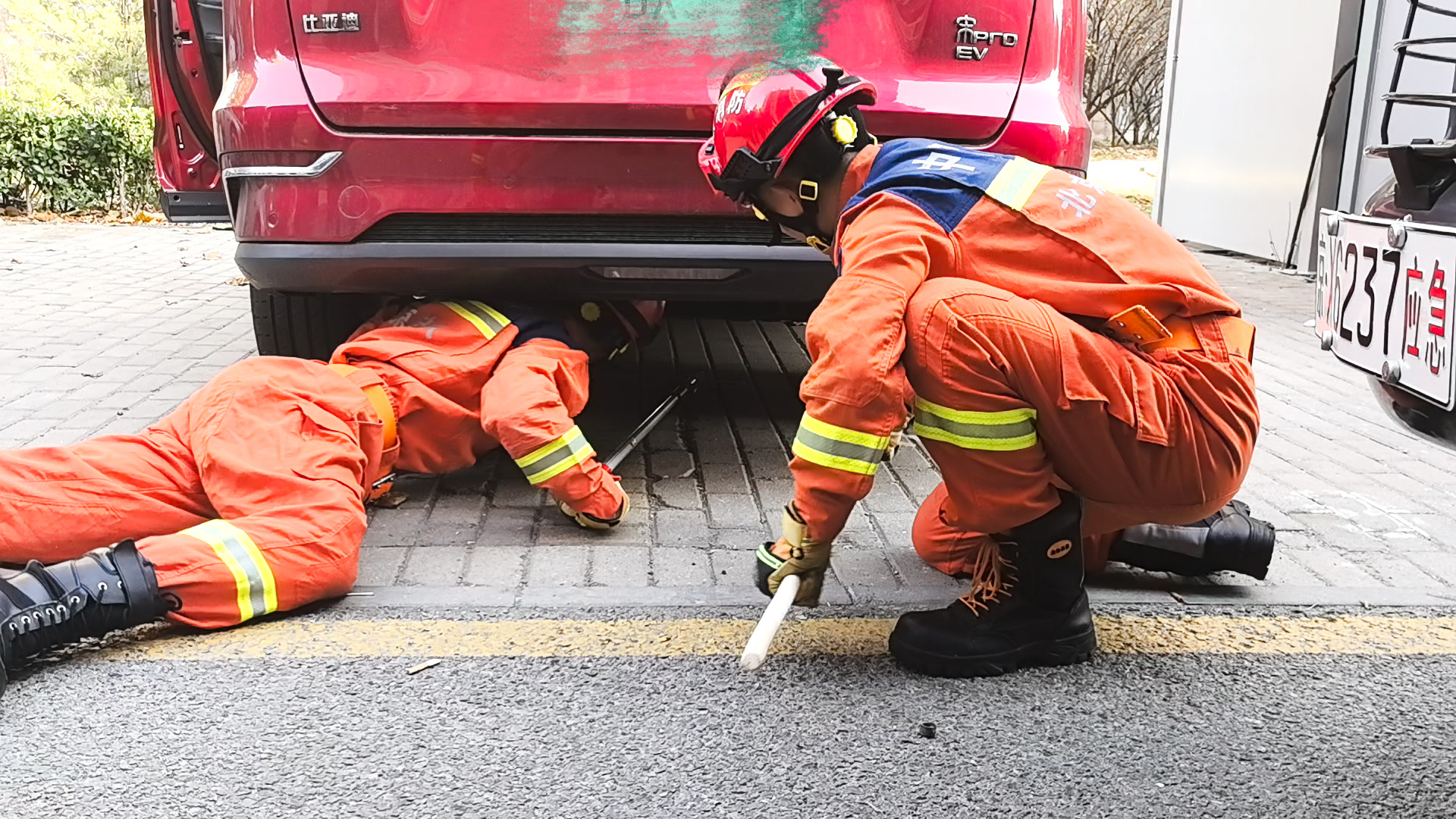 消防救援人员到达现场后,听见不断有小猫的叫声从车底传出,但无法判别小猫的具体位置。于是,两名消防员钻入车底寻找小猫。经过3分钟救援,消防员成功将被困小猫从车底救出。车主推断,近几日刮风降温,小猫才会钻进车底取暖。