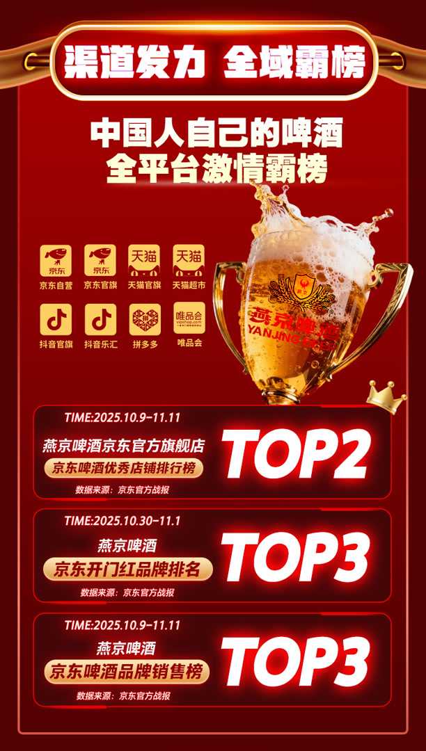 燕京啤酒以多样的产品、全渠道的发力和广泛的品牌传播,在2025年“双十一”期间为消费者带来了精彩的消费体验,也彰显了品牌的强劲实力,未来,相信燕京啤酒还将继续为生活酿造美好,带来更多惊喜。