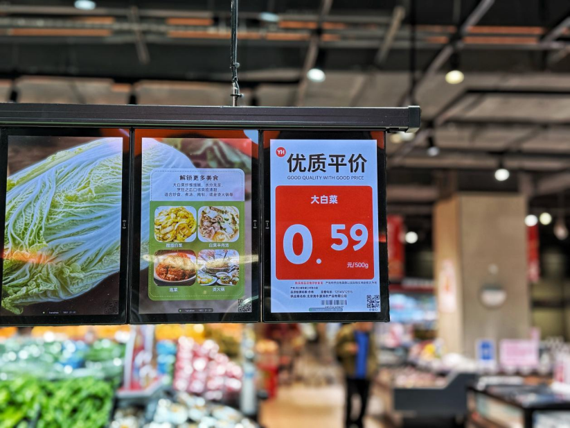 位于瀛海环宇坊地下一层的永辉超市,冬储大白菜从10月下旬就已上架。据店员透露,冬储白菜刚上线时0.99元/斤,11月初降到0.69元/斤,上周末调价至0.59元/斤。