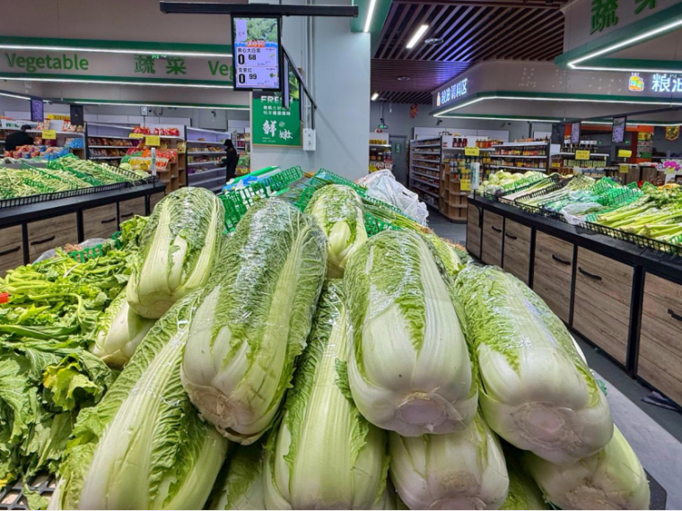 如今大家都住楼房,早已不再像过去那样囤几百斤白菜。但看着货架上新鲜的冬储白菜,顺手买上几颗,能重温小时候的冬日记忆,这就是冬天里的小确幸!