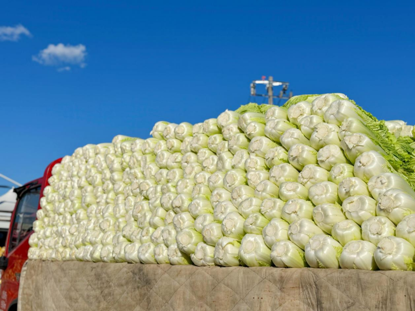 到了次渠的演亦市集,场面更热闹——冬储白菜直接用卡车运送,1块钱一斤,不到半天就被居民抢空,囤两颗放阳台,炖菜、包饺子都方便。