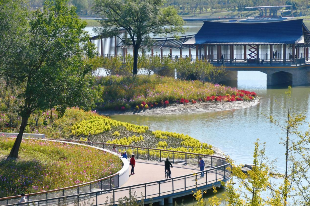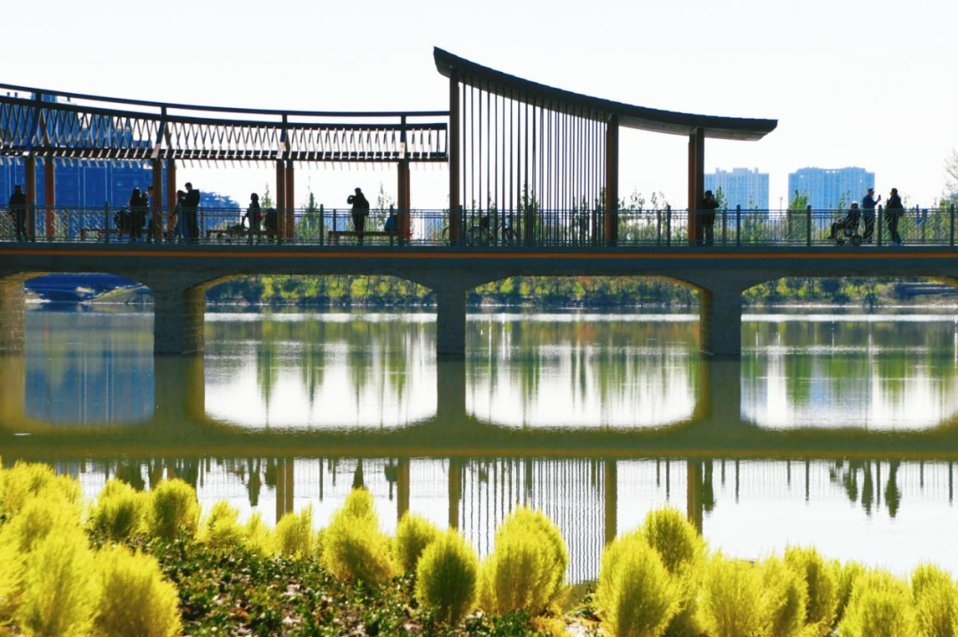 玉河湿地公园沿玉河南路两侧分为南北两区,功能互补、风格各异,不管是想静享时光,还是想带娃撒欢都能精准匹配。