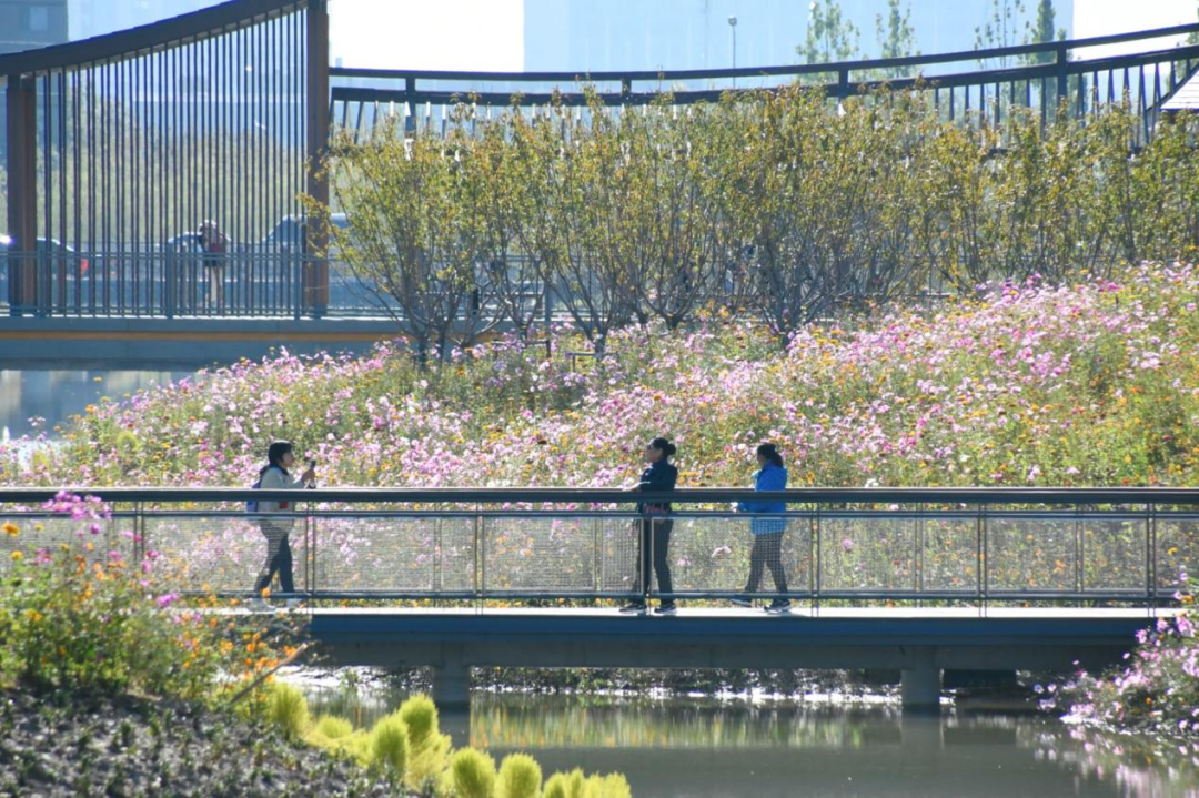 除了“颜值”在线,玉河湿地公园更暗藏“生态智慧”。“六条净水环廊”通过循环补水、景观跌水、互动提水等生态工程技术,串联起河、湖、坑、塘、溪等多种湿地形态。