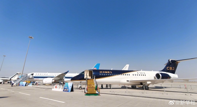 据了解,在航展现场的静态展示区,中国南方航空的C919飞机和中国商飞的C909公务机同台登场。这架南方航空的C919飞机采用164座三舱布局。C909公务机舱内空间宽敞舒适,可灵活设置休息区、会客区、会议区、就餐区等功能布局,提供12至29座配置方案,能够满足客户多样化出行需求。