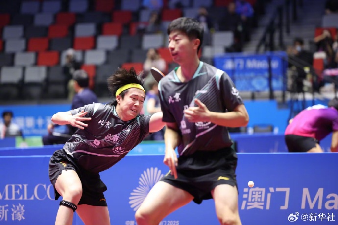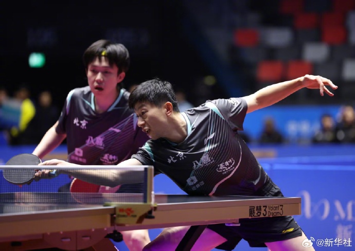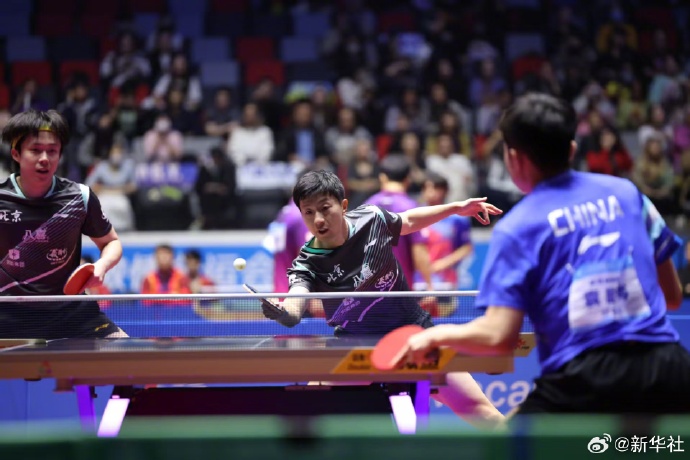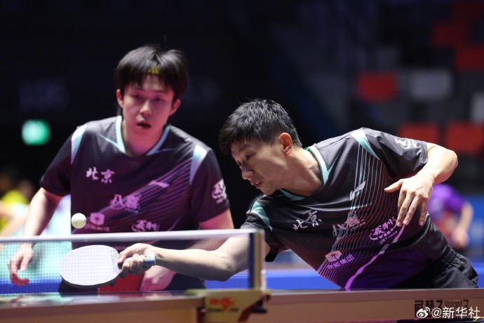 全运会乒乓球男团1/4决赛,马龙王楚钦双打3比0赢了