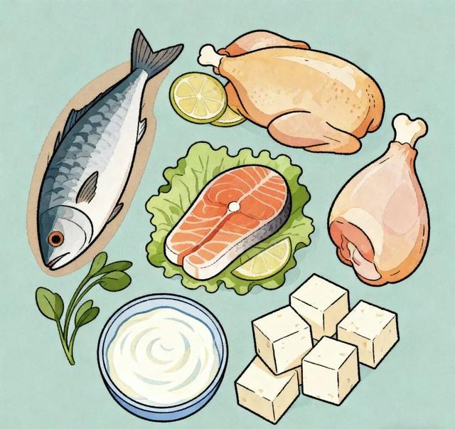 优质蛋白:鱼肉、鸡肉、豆腐、酸奶,帮助身体修复。