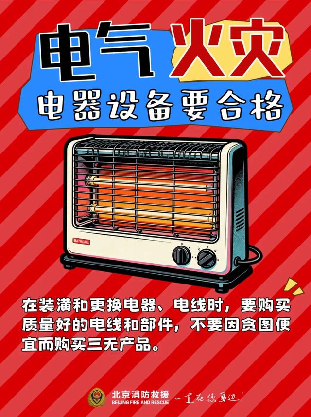 如电暖气或电熨斗等电器未按要求使用、在附近堆放易燃易爆物品、用后忘记断开电源,也可能导致火灾。