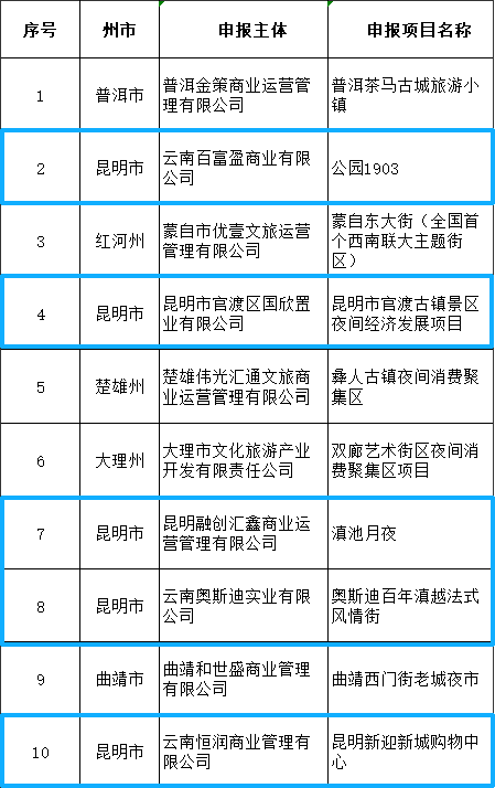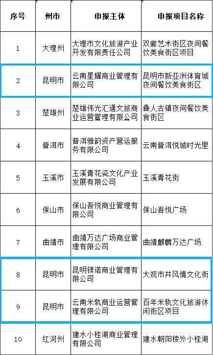 根据《云南省商务厅关于组织开展云南省夜间经济发展项目申报的通知》相关要求,经申报主体申报、州市初审推荐、省商务厅审核,拟对以下通过审核的夜间经济发展项目给予资金奖补,现予以公示。