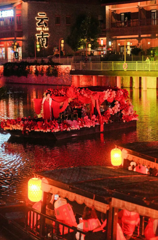 融创滇池后海大型沉浸式水上演出为春城夜游体验带来全新选择。这场以昆明历史文化为灵魂的沉浸式演出,依托云河自然水系,通过精心设计的灯光、音乐、戏剧表演与实景结合,打造出一场移动式的视听盛宴。