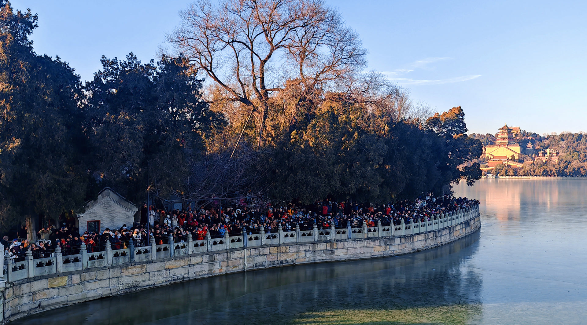 北京的冬天有韵味。颐和园十七孔桥畔,冬至的寒意沁骨。桥上桥下,手提“长枪短炮”的摄影师与摄影爱好者们裹紧棉衣,搓手跺脚,长等三四小时短候一二小时,只为拍摄夕阳熔金、洞穿桥孔那瞬息奇景。人虽千百,无人焦躁。