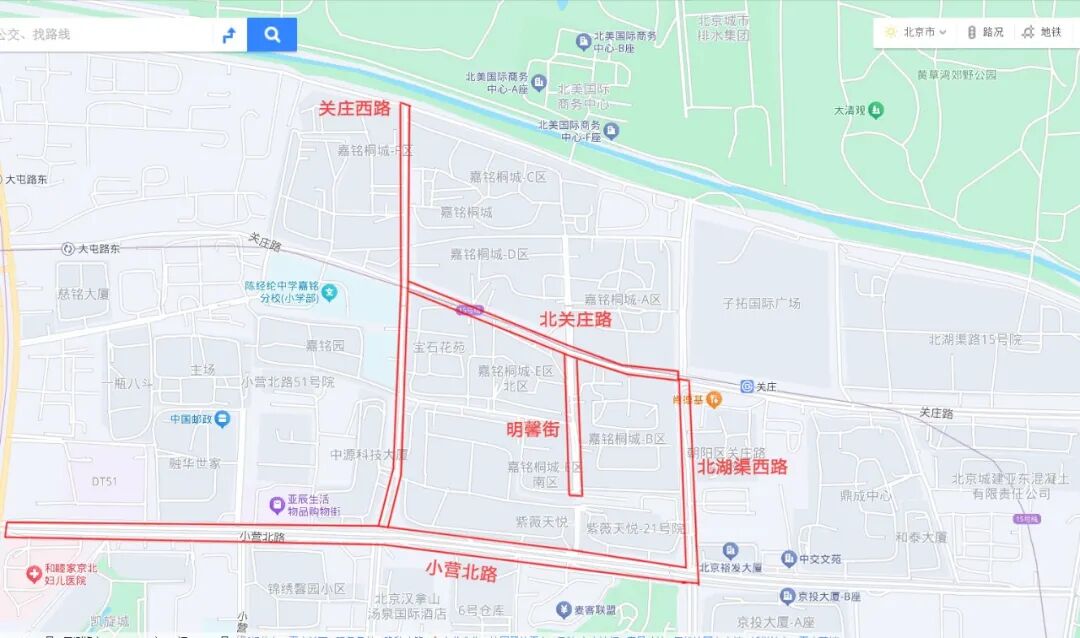 小营北路、北关庄路、关庄西路、北湖渠西路、明馨街5条道路已打包就绪,282个停车位向居民开放就近共享。
