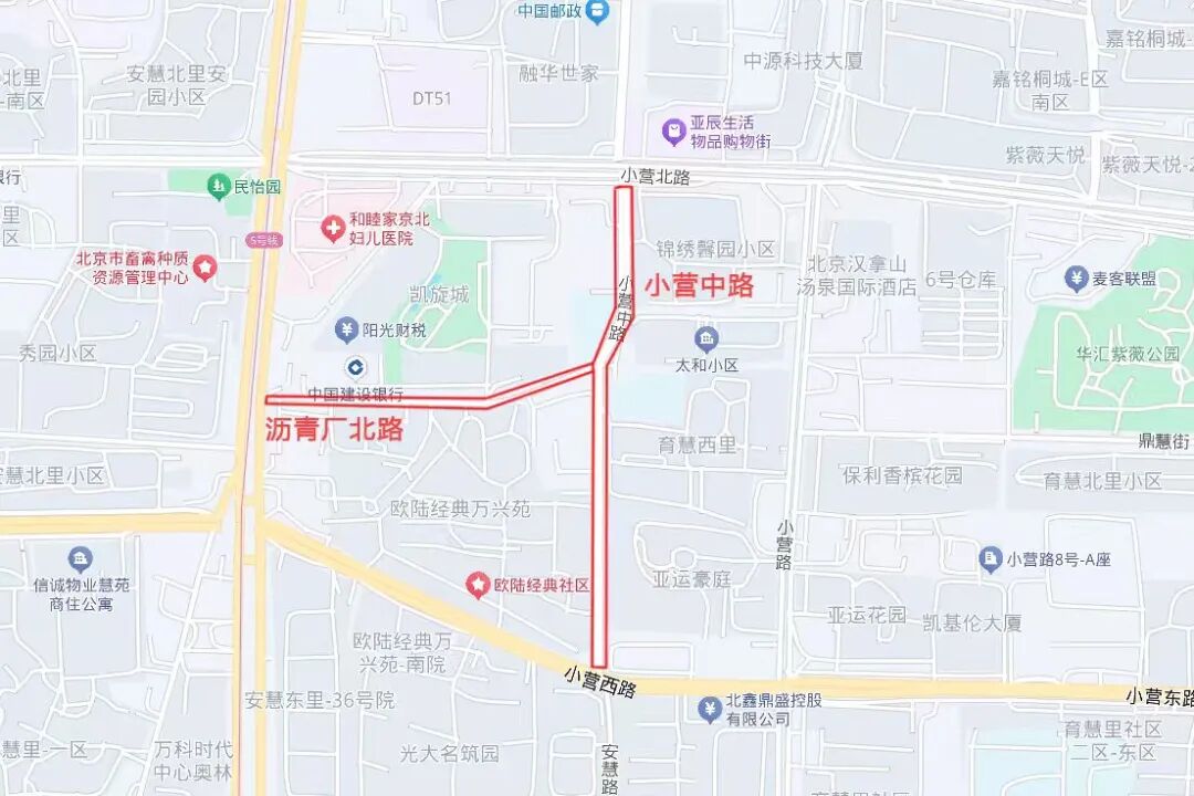 沥青厂北路、小营中路2条道路,130个停车位向居民开放就近共享。