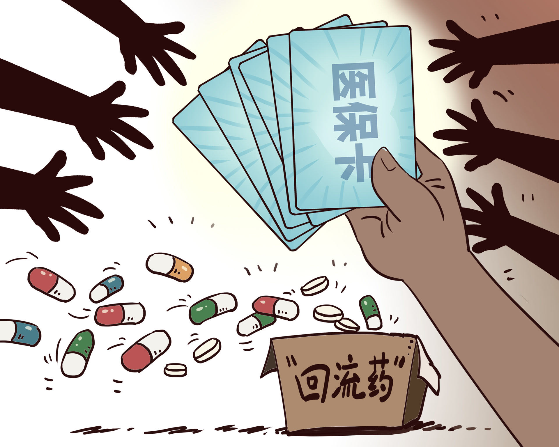一些不法分子通过“医保取现”“高价回收”等手段,诱导参保人倒卖医保药品。这种通过医保报销渠道获取的药品,经非法转手后再次进入市场销售,就是“回流药”。“药贩子”通过指令、授意参保人在不同医院使用医保卡多开、虚开药品,并低价收购后加价销售给药品回收人,药品回收人销售给医药机构、诊所等,甚至还有“职业收药人”支付租金来大肆收敛他人医保卡,并在多家医院大量配取药物,层层加价后销售牟利,形成一条药品倒卖的“黑色产业链”。