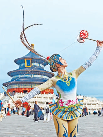 清脆的笛声穿透公园的竹林;明亮的唢呐与孩子的笑声形成交响;专业舞蹈演员与爱好者在艳阳下共舞;驰骋国际赛场的杂技演员与市民一起抖空竹……