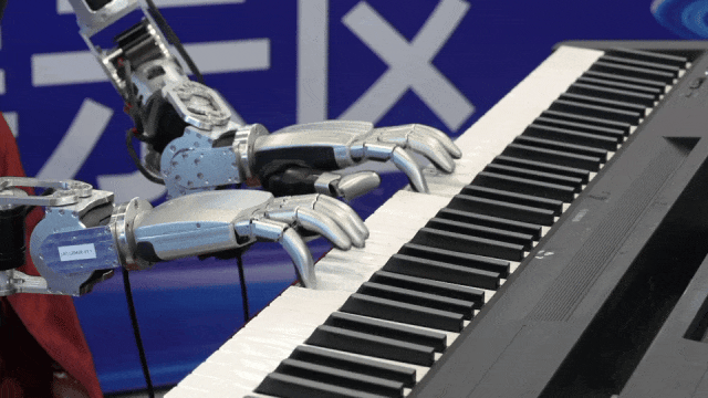 灵巧的机械手指在黑白琴键上跃动