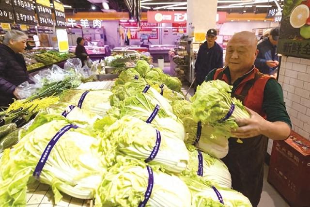 早年间,对很多北方人而言,入冬的标志不是下雪,而是满载冬储大白菜的卡车一辆一辆开进城来。冬天囤大白菜,一度是北方多地居民不可或缺的传统。11月上旬,随着全市冬储大白菜陆续集中上市,西城区各大超市、便民菜店把冬储菜摆到了最显眼的位置,大白菜普遍不到1元一斤,大葱不到2元一斤。耐储的烟薯、沙地蜜薯也一并上架,为居民的冬日餐桌多添几道菜色。