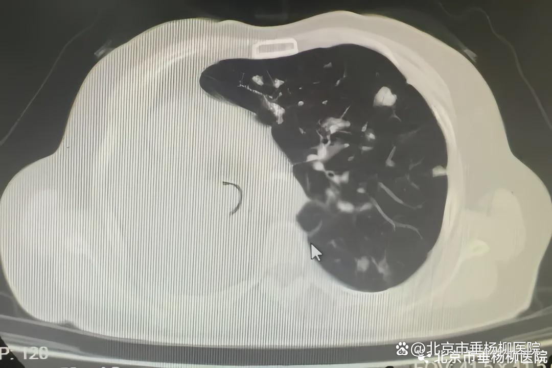 患者为老年女性,有右肺肿瘤病史1年余,近5个月出现活动后喘息,5天前症状急剧加重,出现呼吸急促、不能平卧等危急情况。患者既往有冠心病、高血压、脑梗、糖尿病等多种基础疾病。外院CT显示其气管下段被肿瘤阻塞,仅存一条缝隙,右肺完全不张,左肺存在多发转移灶,病情十分危重。由外院转诊至垂杨柳医院呼吸与危重症医学科。